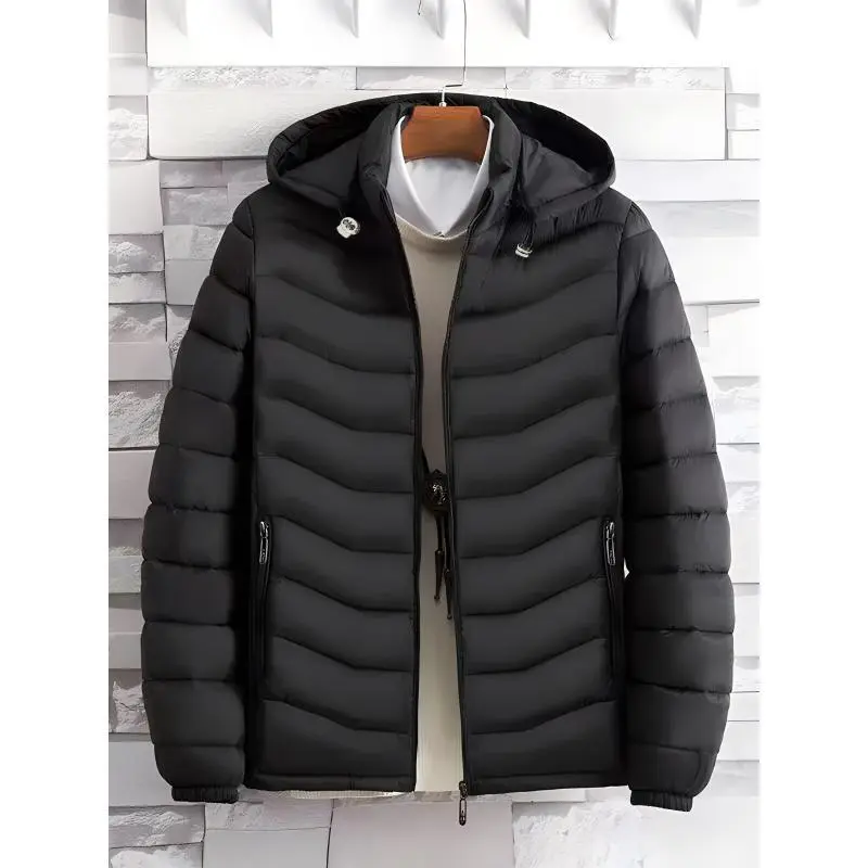Mens Quilted Hooded Puffer Coat - Water-Resistant, Breathable, Zip-Up, Long Sleeve, Warm, and Lightweight - Perfect for City Walks, Street Hanging, and Winter Outdoor Activities