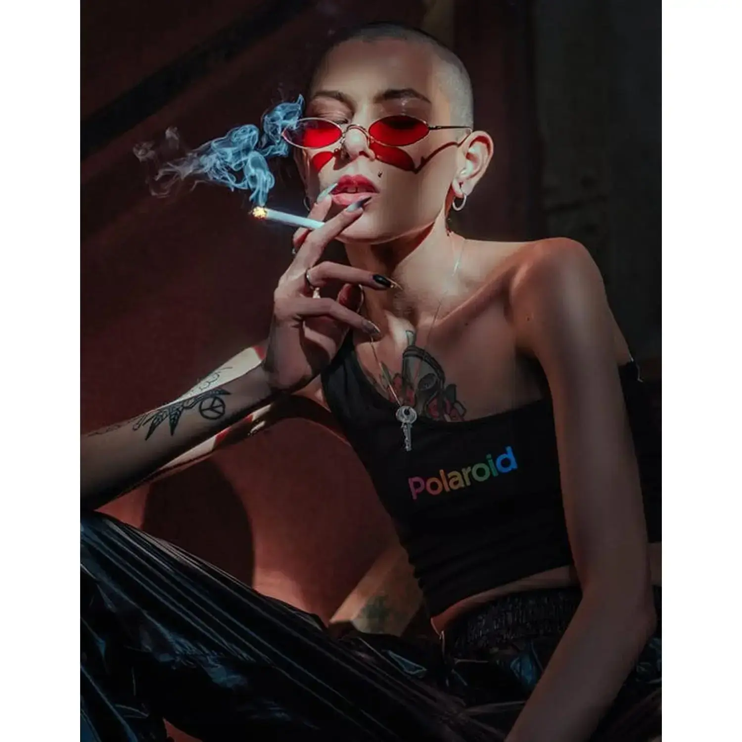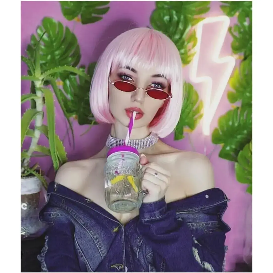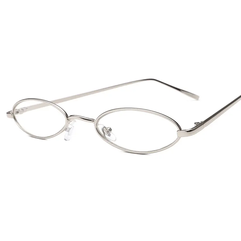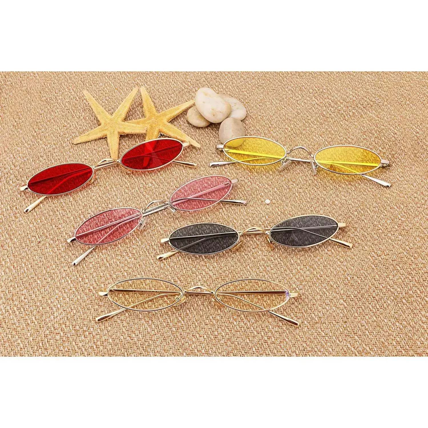 Retro small sunglasses with oval shaped slender metal frame and candy color