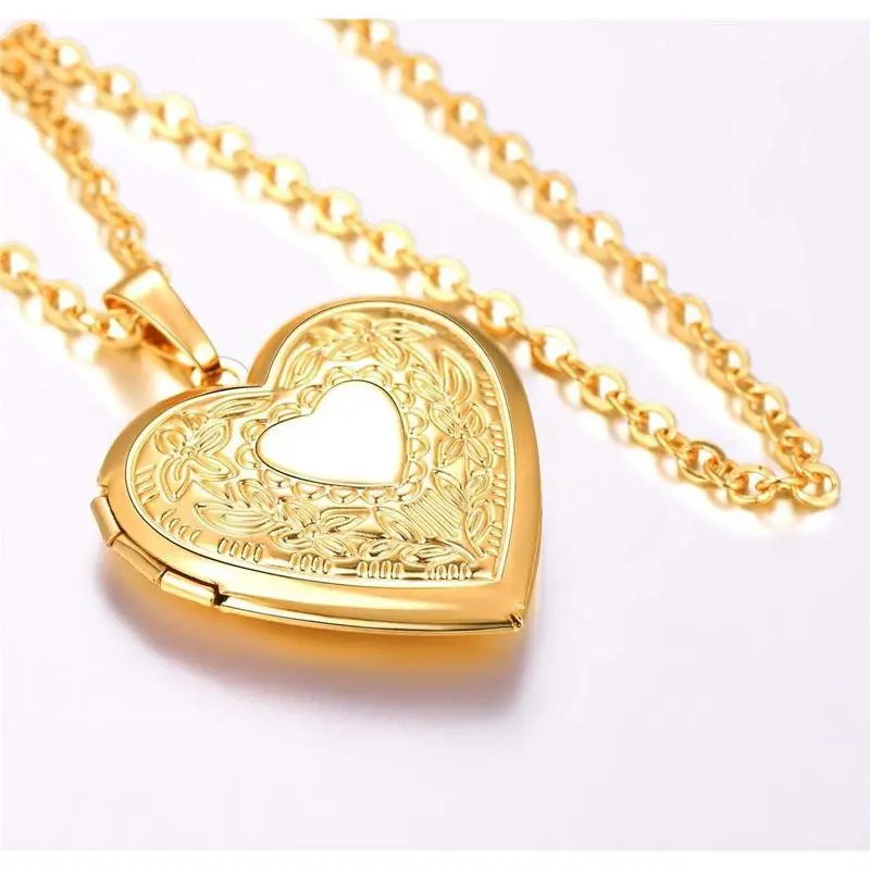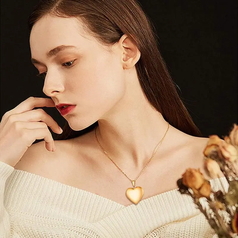 Women Locket Necklace Platinum 18K Gold Photo Lockets that Hold Picture,Chain 20 Inch Personalized Gift Custom Love Heart Image Necklaces