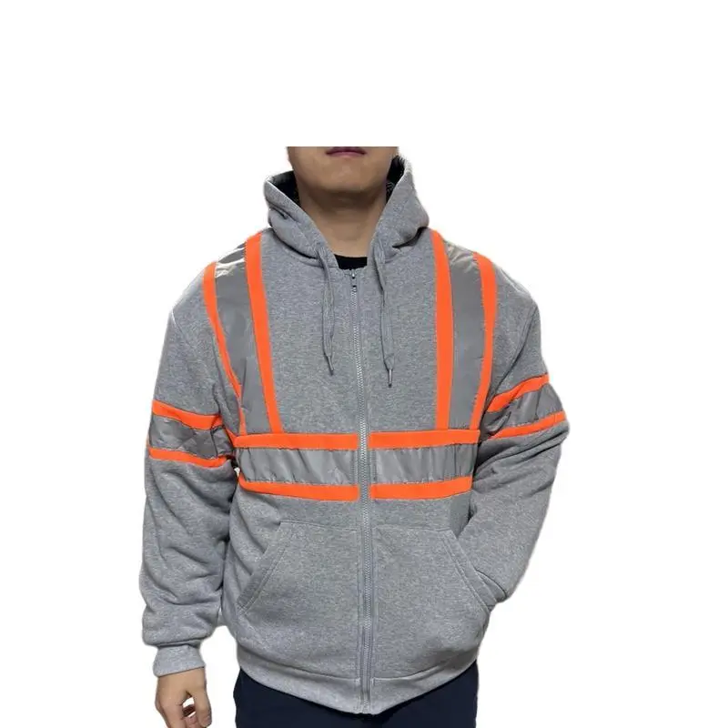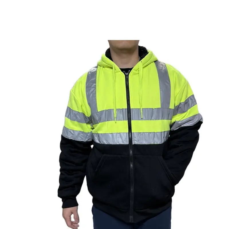 High Vis Safety Reflective Sweatshirt Wool Fleece Zipper Jacket Hoodie Menswear