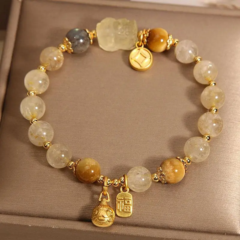 Healing Crystal Beaded Bracelet Natural Gem Anxiety Spirit Bracelet Topaz Tiger Eye Crystal Energy Bracelet Gift