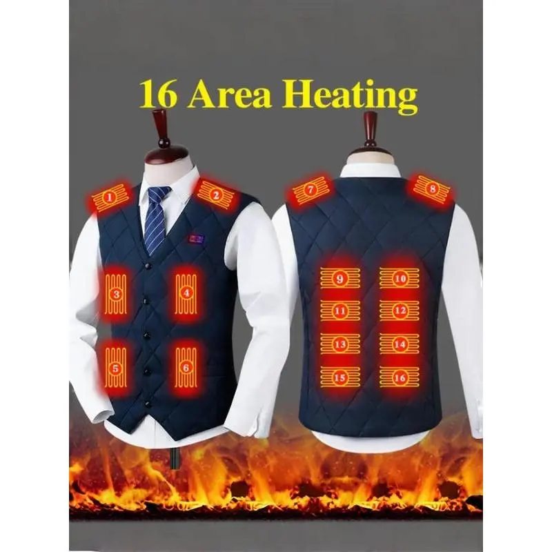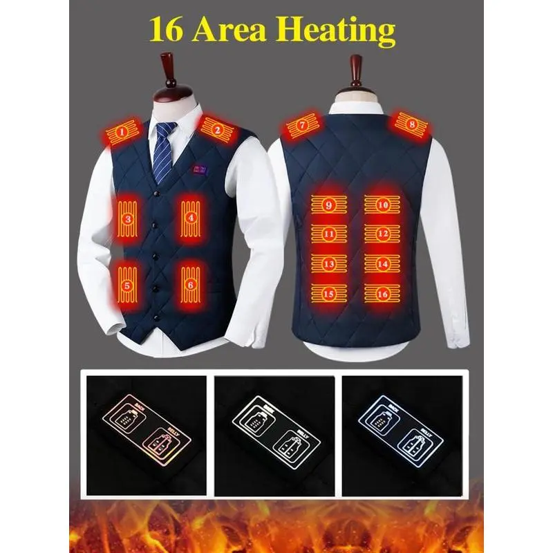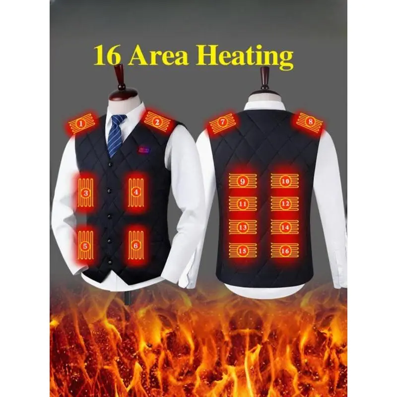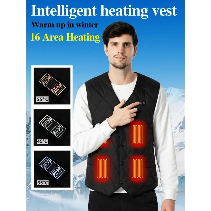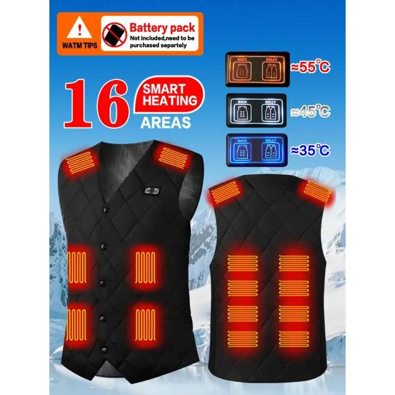 Without Battery USB Rechargeable Heating Vest, 3 Gear Adjustable Temperature 16 Heating Modules Heating Vest, Men's Sportswear for Fall & Winter