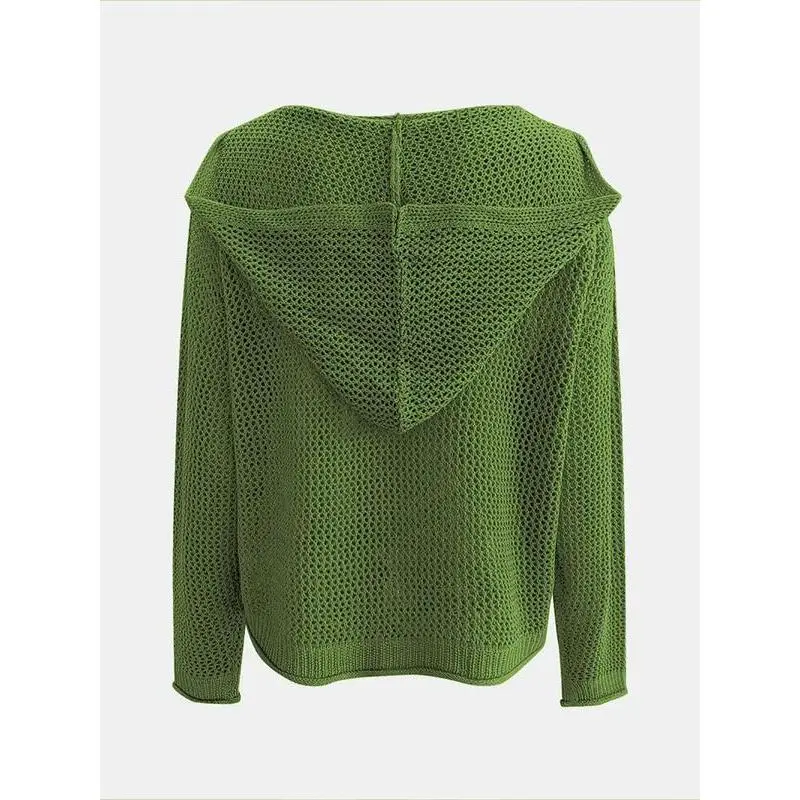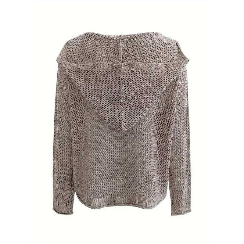 Women's Plain Hollow Out Drop Shoulder Sweater, Casual Basic Long Sleeve Hooded Sweater for Spring, Ladies Knitting Knitwear for Daily Wear