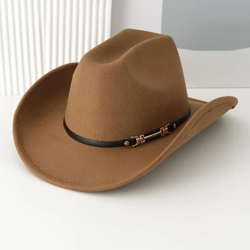Solid Color Cowboy Hat with Unique Faux Leather Belt Elevate your style with this solid color cowboy hat, designed to make a statement at any event. This hat combines functionality with a touch of Western flair. Whether you're attending a Western-themed gathering or looking to add a unique touch to your wardrobe, this hat is the perfect choice.