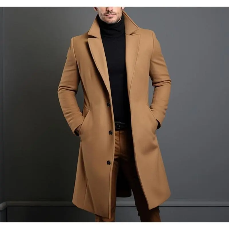 WoolenCoatMen'sMid-LengthSolidColorAutumnandWinterWoolenCoatWarmYouthOvercoatJacket