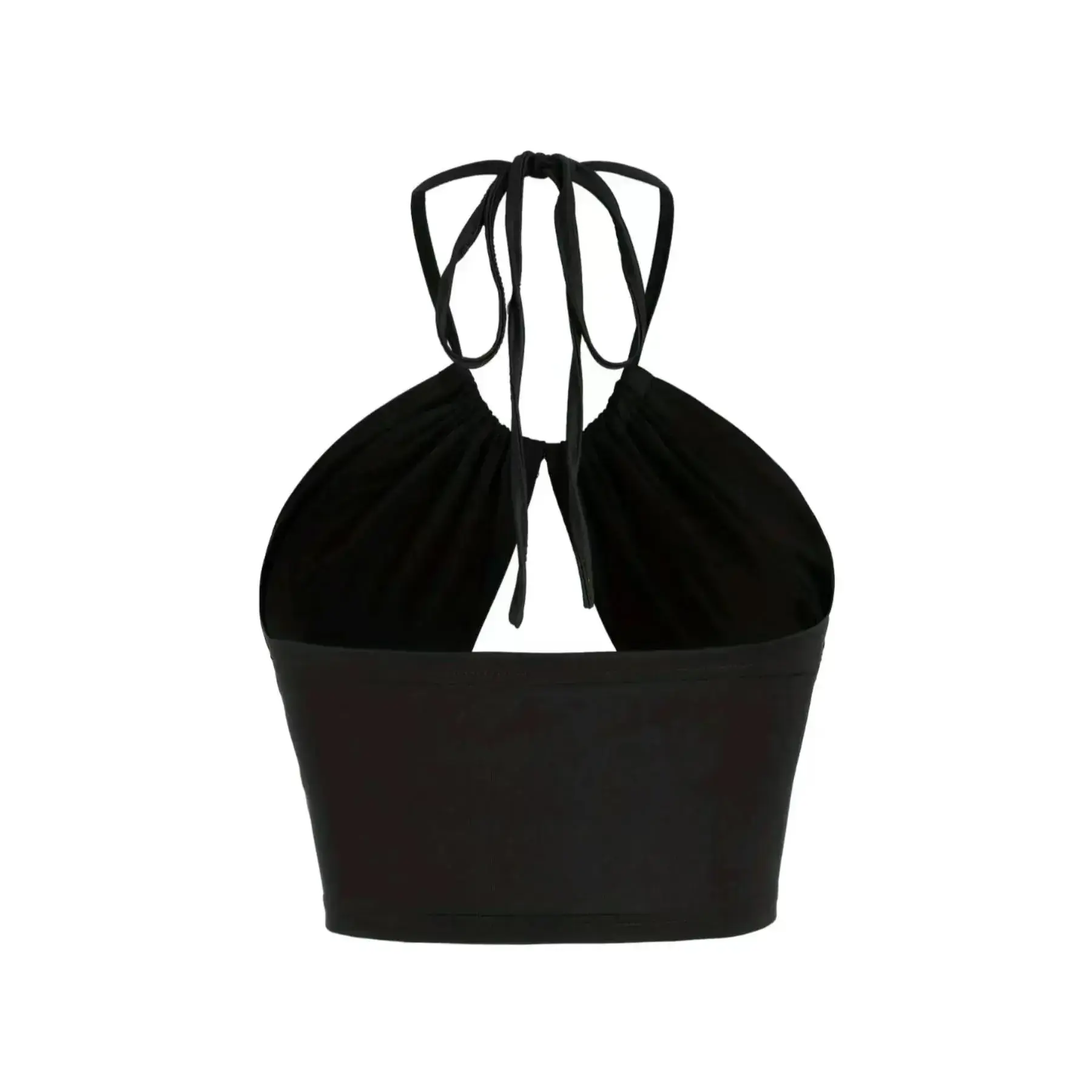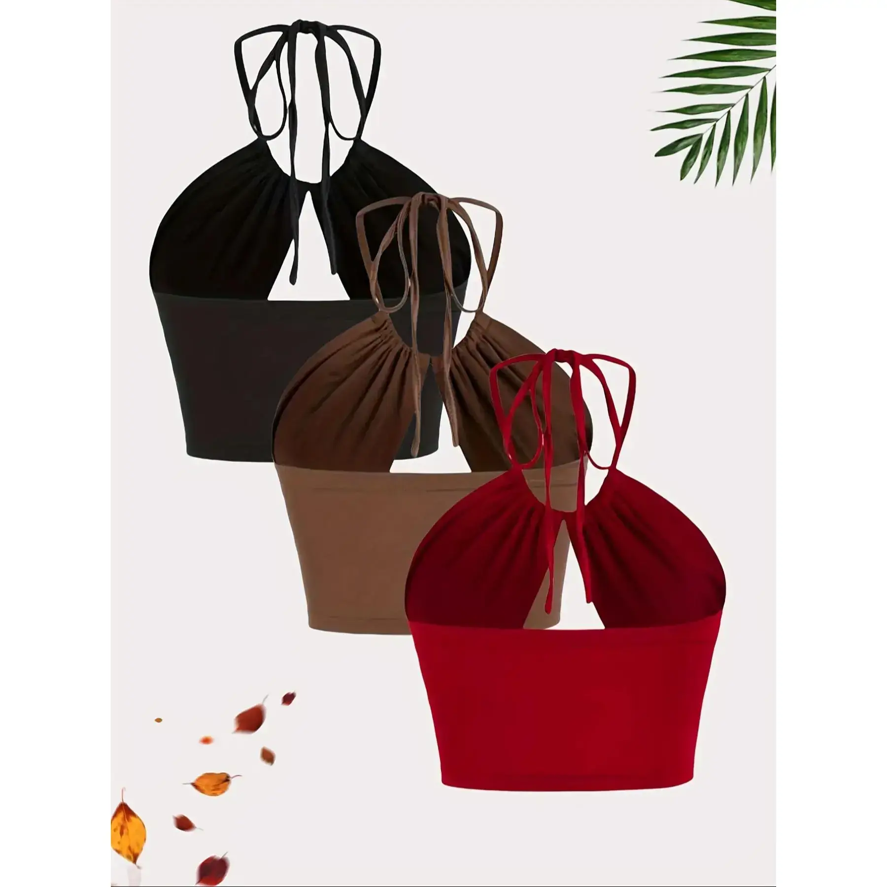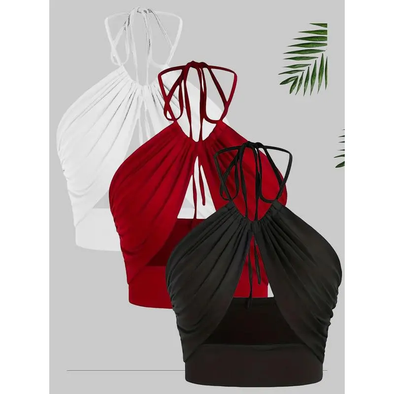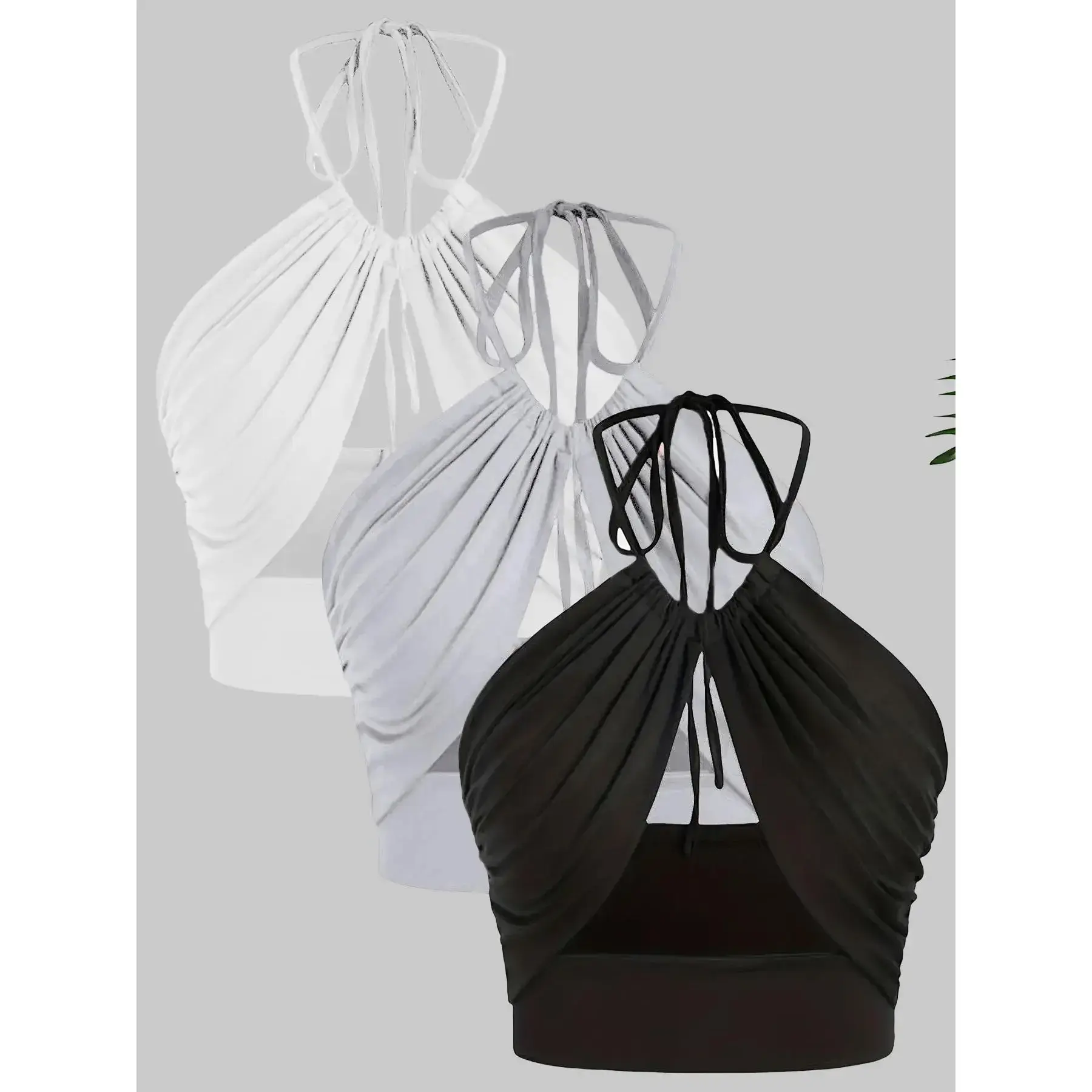 Women's Solid Color Ruched Cut Out Halter Neck Top, Fashion Casual Minimalist Tie Backless Sleeveless Top for Daily Outdoor Wear, Women Clothing for Summer