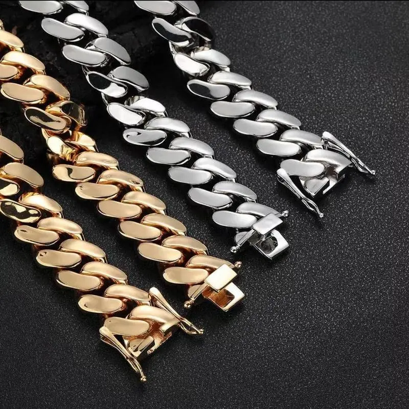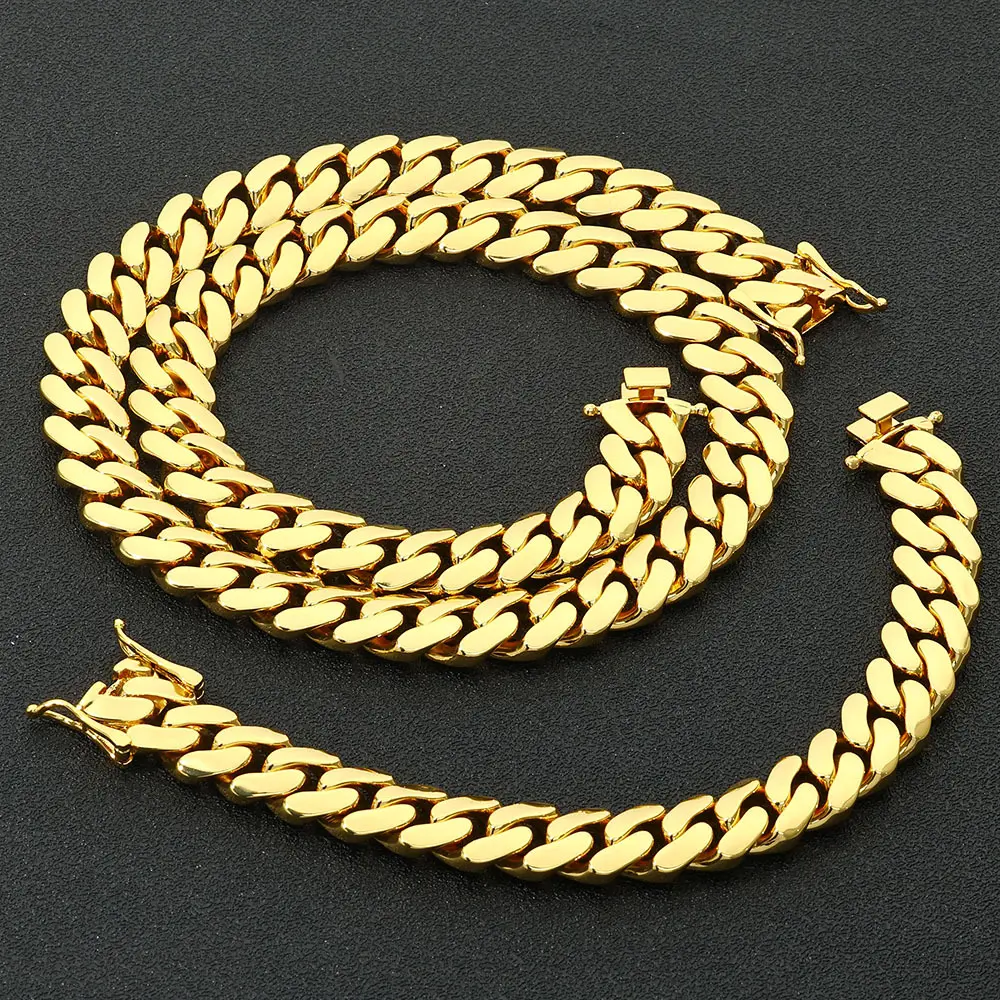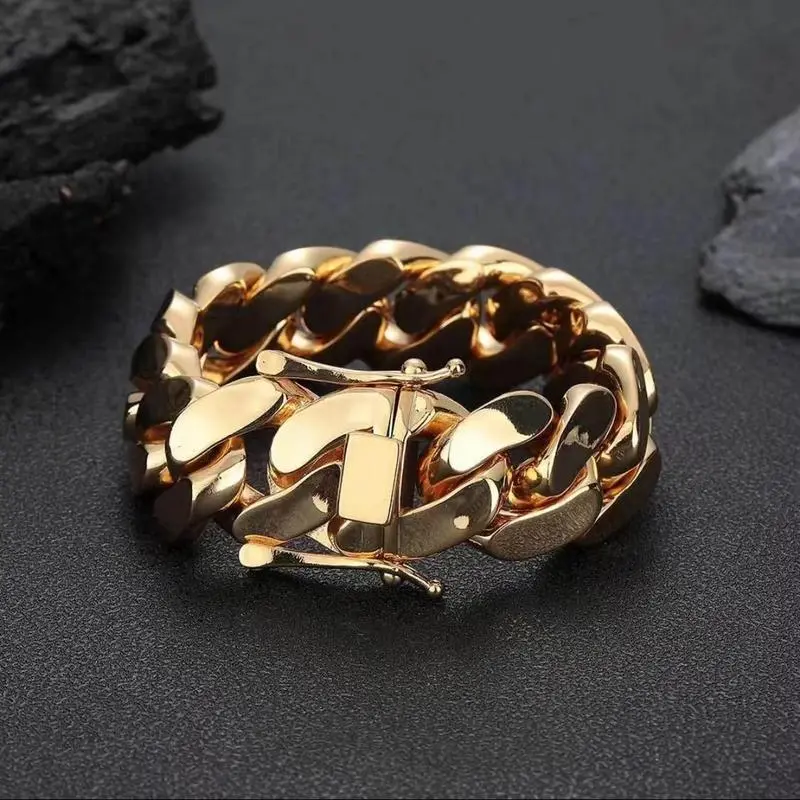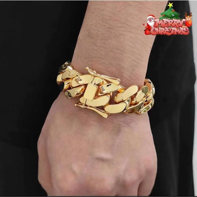 14K Gold Vacuum Plated Stainless Steel Chain & Copper Deployment Clasp Miami Cuban Link Chain Italy Mexico & Micro Inspired Unisex Hip Hop 22mm Bracelet for Men & Women Jewelry,Daily Wear,Casual Fashion,Gift Idea,Chicano Style,Weighty Feel,Stackable