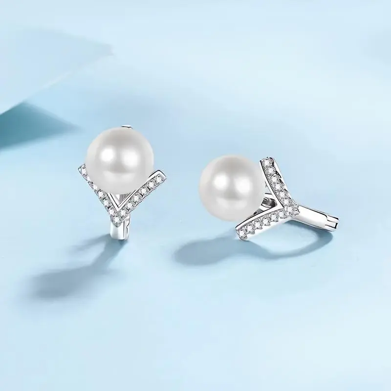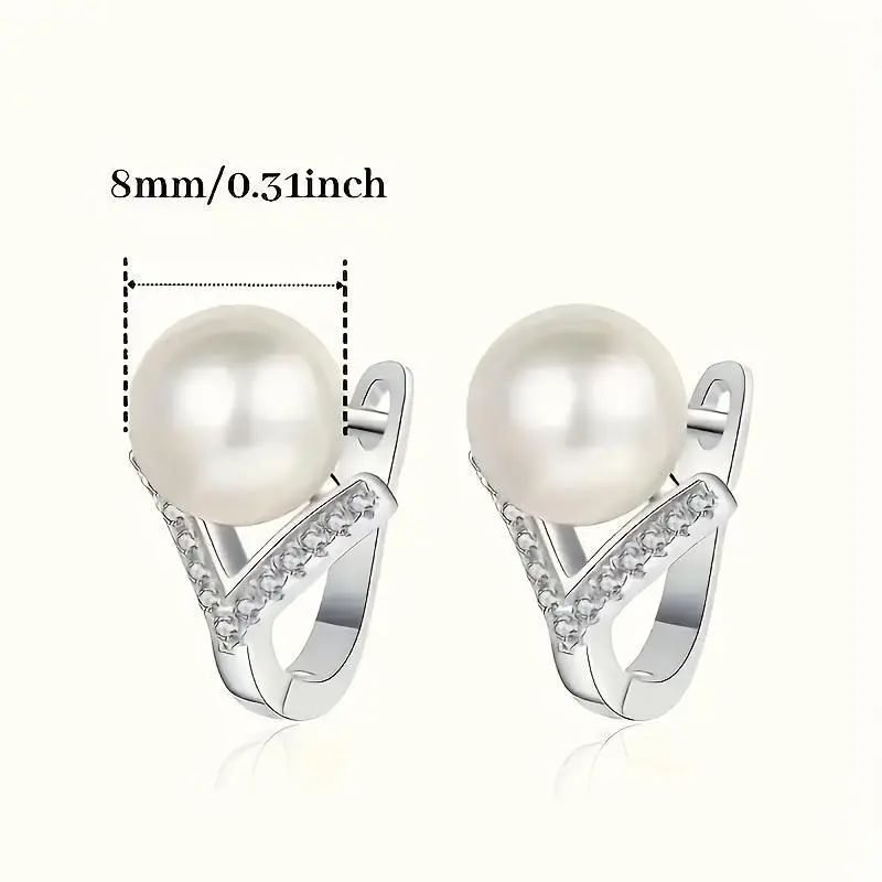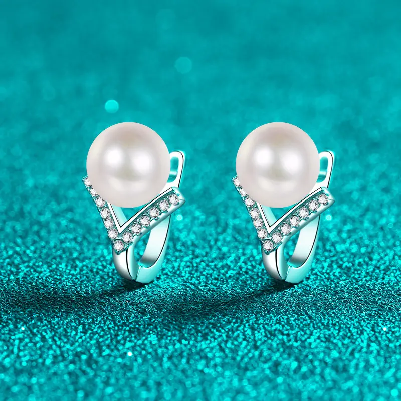 A Pair of Elegant 925 Sterling Silver Earrings with AAA Diamond and Freshwater Pearl, Synthetic December Birthday Stone, Hypoallergenic, Vintage Style, Luxury Fashion Jewelry, with Quality Gift Box, Suitable for Daily and Holiday Occasions