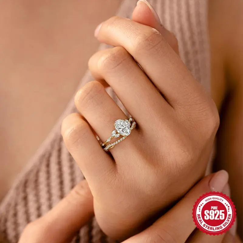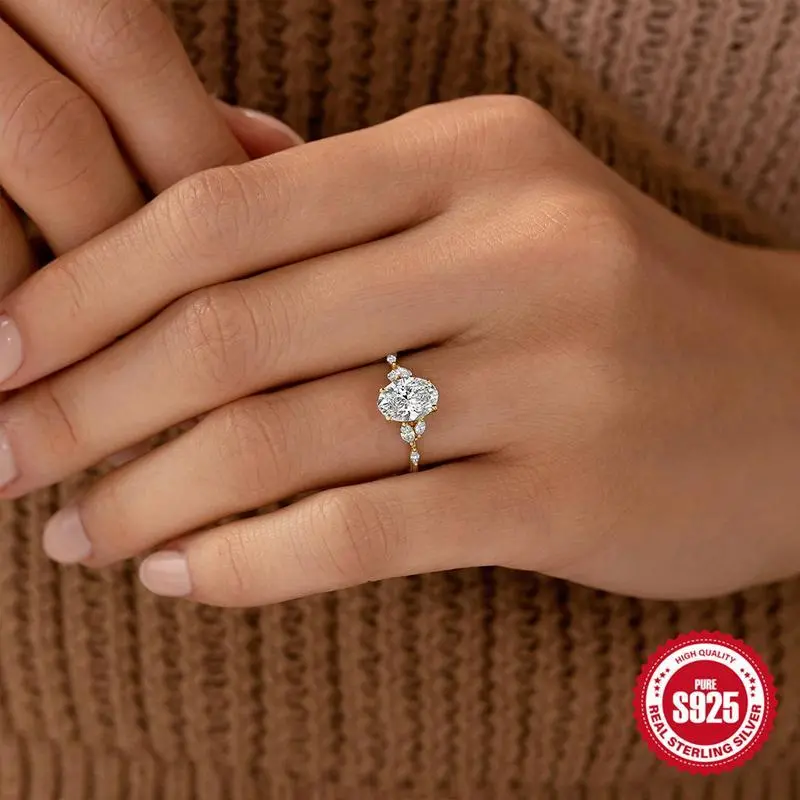 Vintage Classical Dainty Style Engagement Cluster Accent Oval Zircon Gemstone Promise Ring Christmas Gift