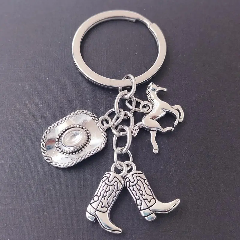 2025FashionElegantCowboyHatKeychainWesternCowboyBootsHorseKeychainMen'sBackpackPendantAccessoriesCharmwithHorseCharm