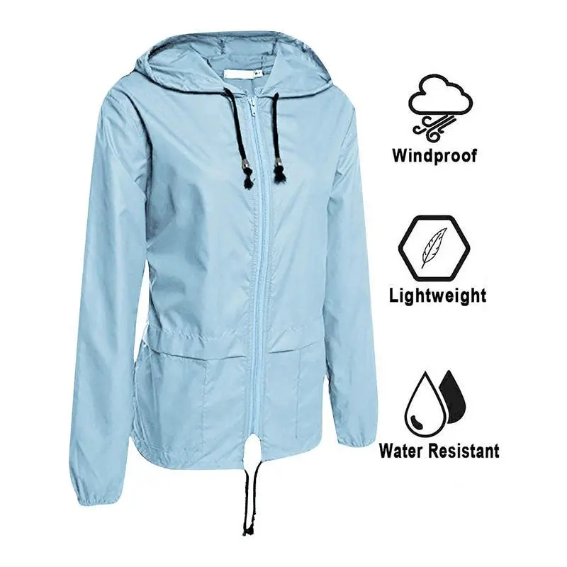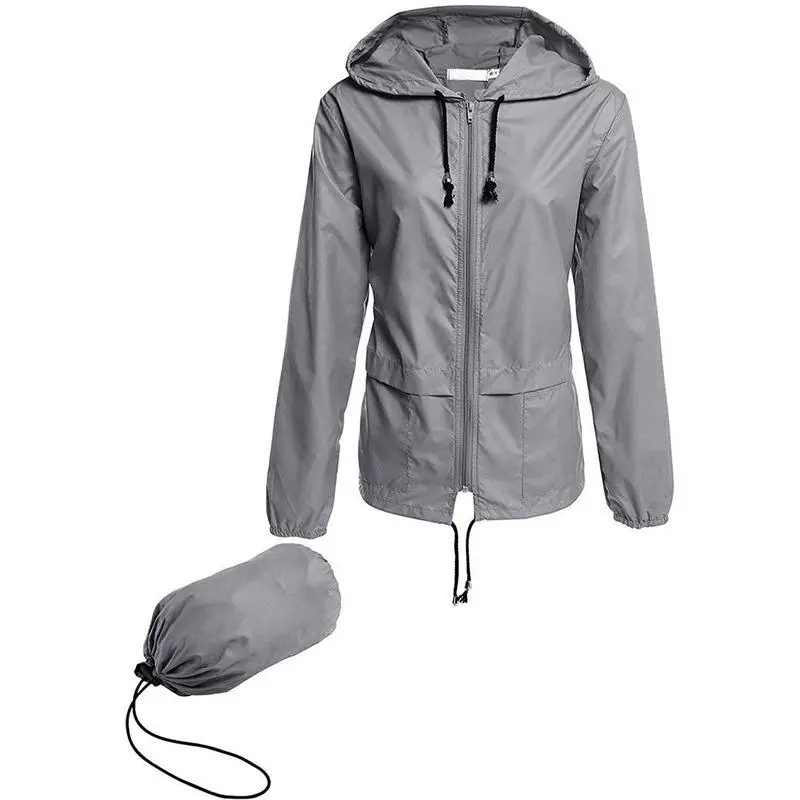 Women Packable Rain Jacket, Outdoor Hooded Windbreaker with Adjustable Drawstring