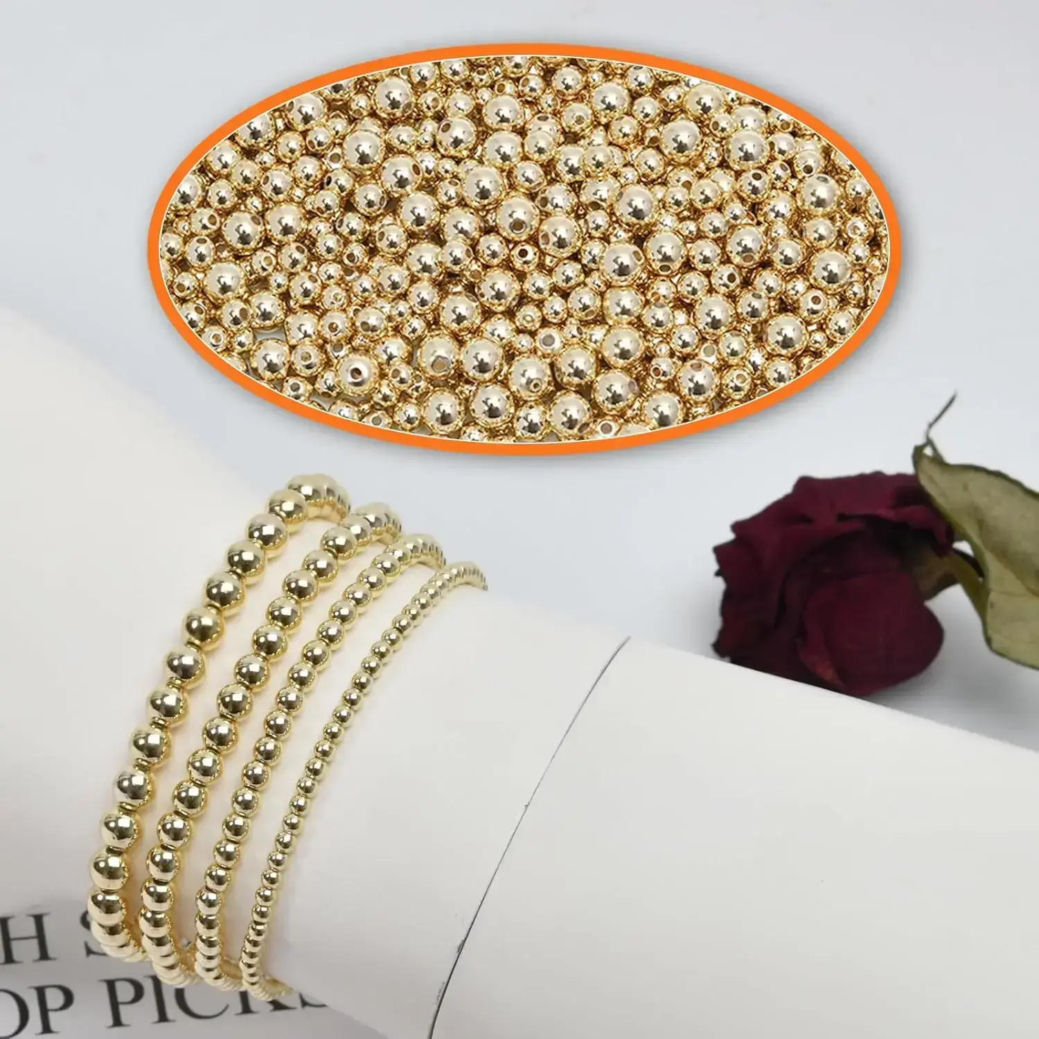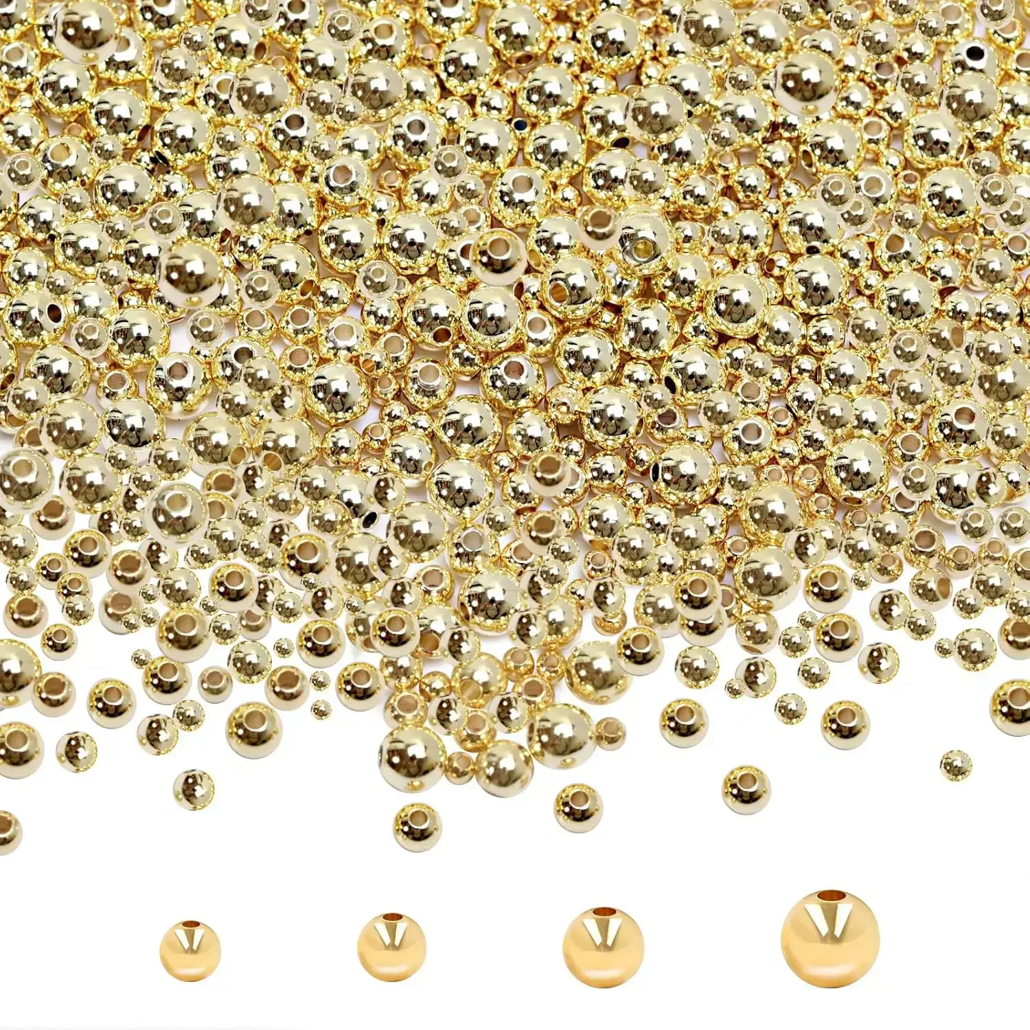 Gold Filled 250pcs 14K Round Bracelet Beads, Smooth Metal Brass Beads, Lasting Round Spacer Beads for DIY Necklace Bracelet Jewelry Making (5mm)