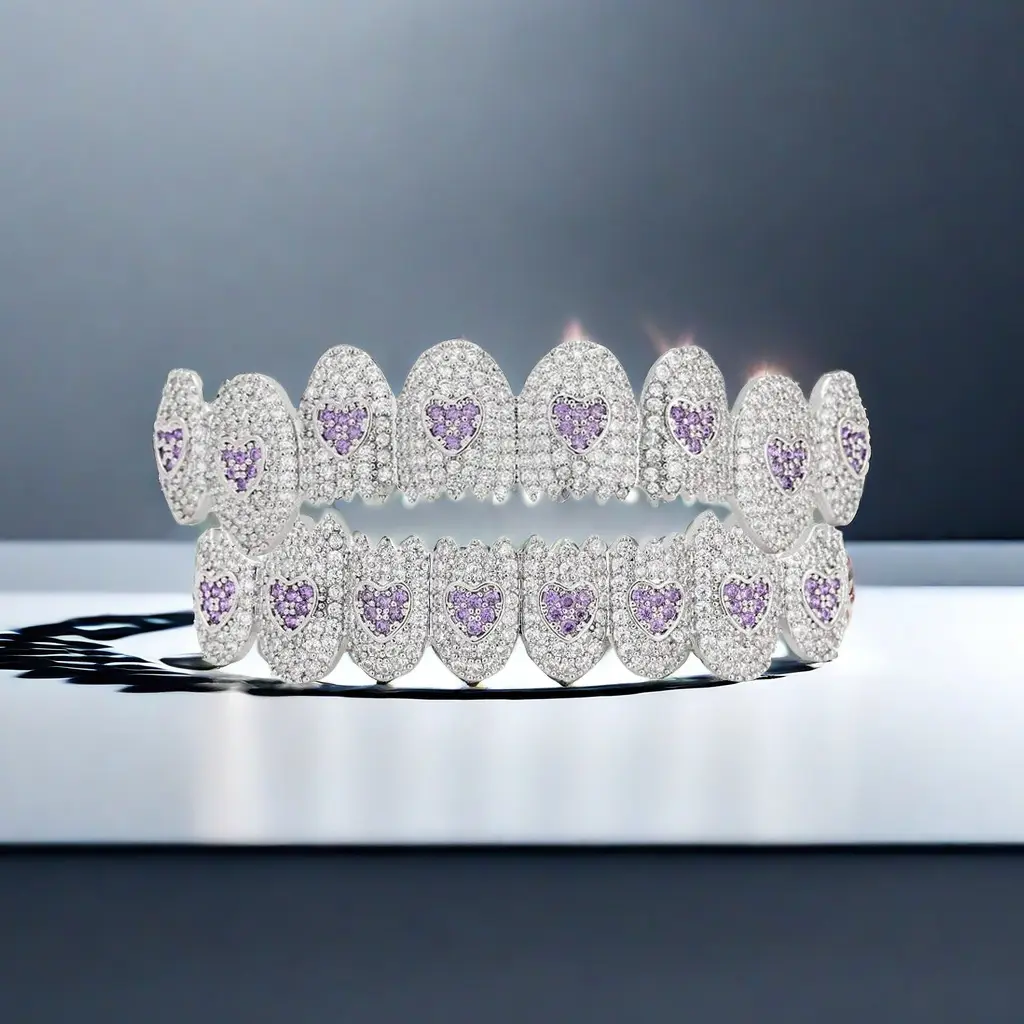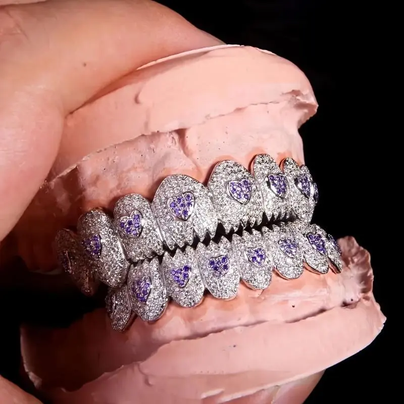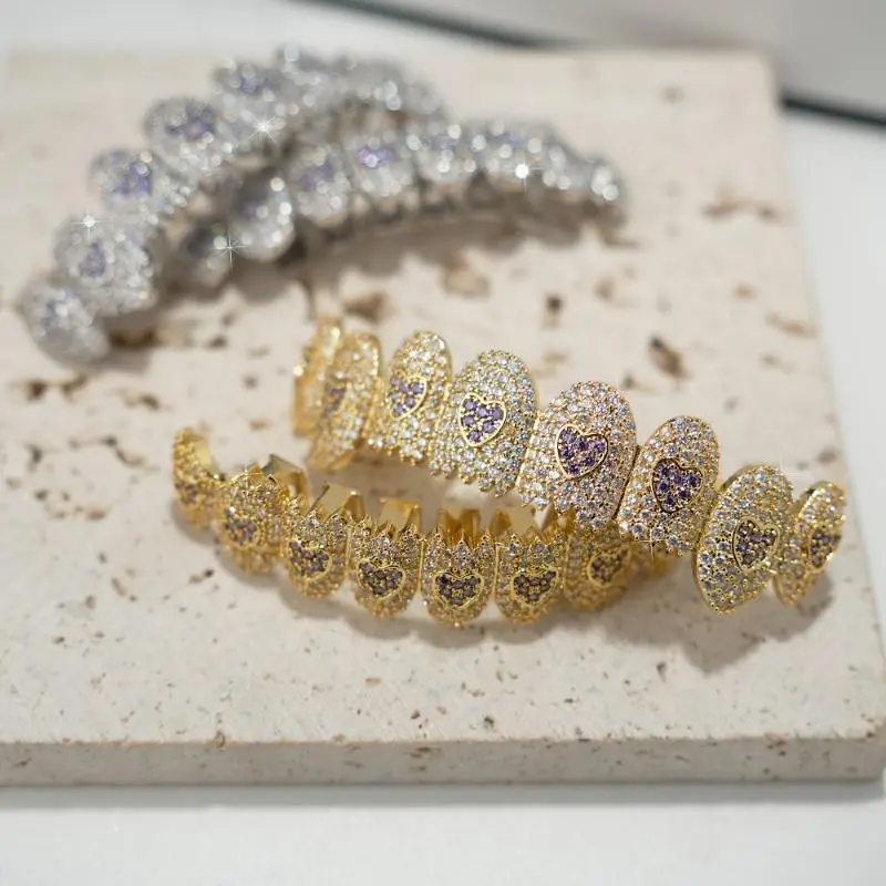 2pcs/setNewHalloweenPartyGiftJewelryFullIceFangsPlatedSharkLoveTeethMasksSilveryGoldenFunnyComedyHatAnimalHats