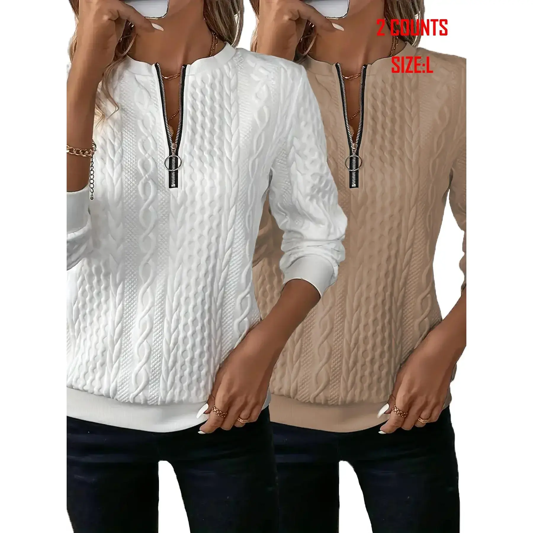 Women's Textured Zipper Half Placket Pullover Sweatshirt Set, Casual Long Sleeve Round Neck Sweatshirt for Fall & Winter