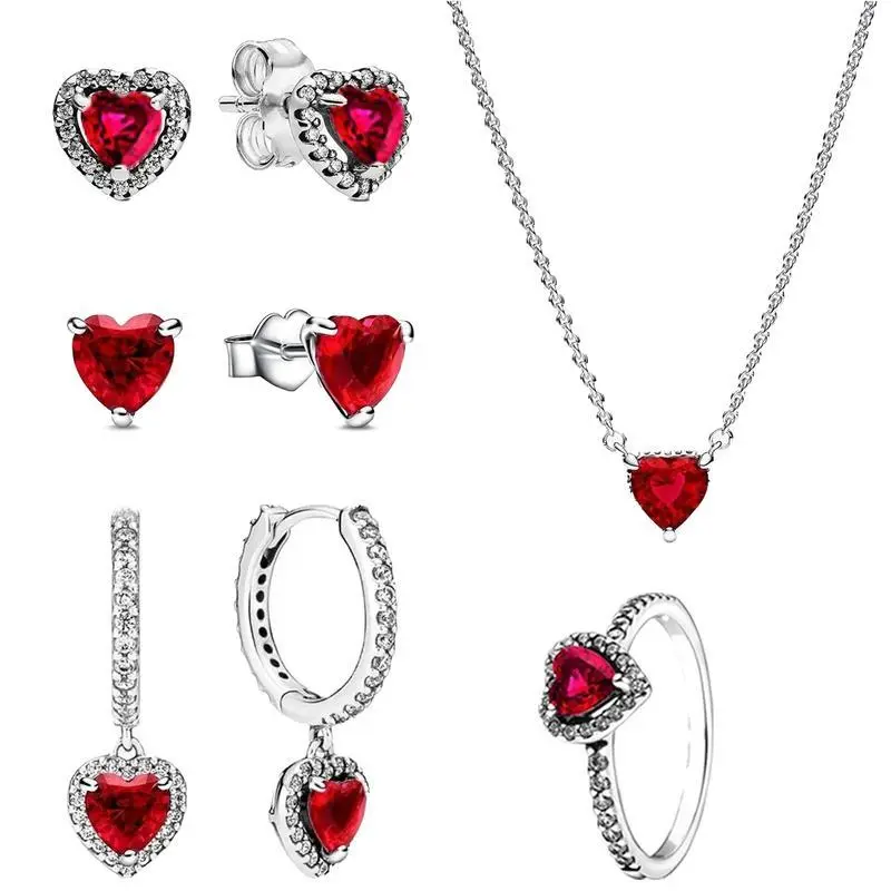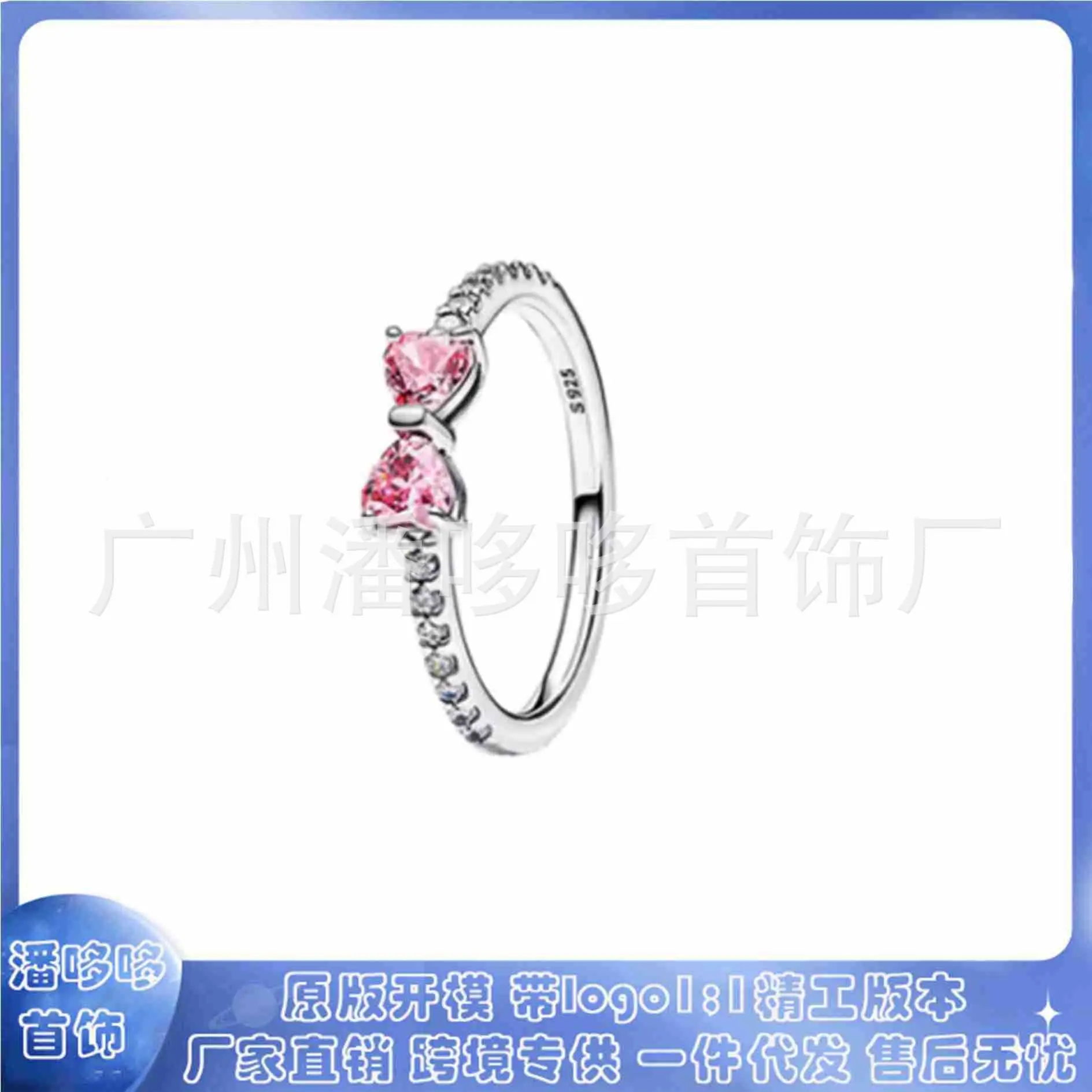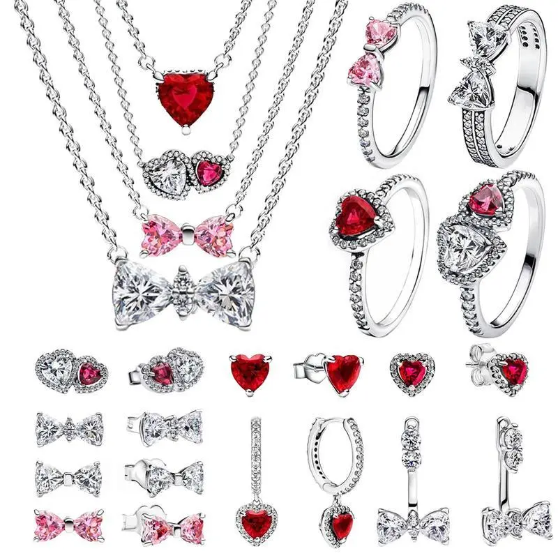 SterlingSilverZirconPinkShiningBowSetRingEarringsBraceletsNecklaceWomenFineJewelry