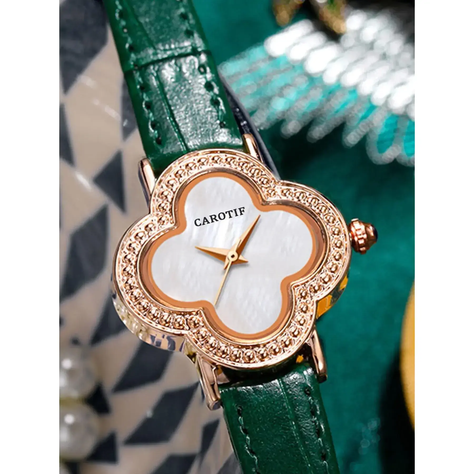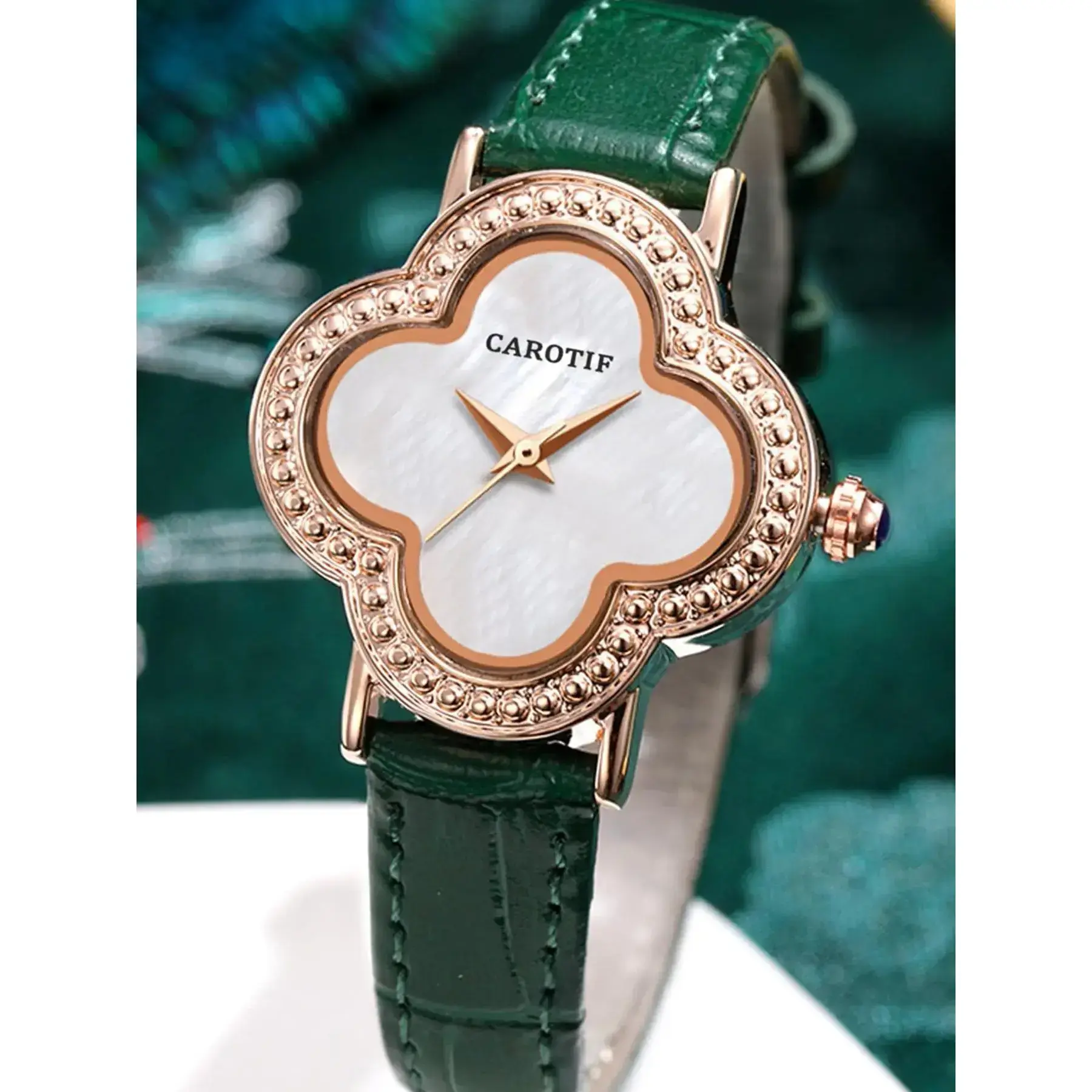 Women's Elegant Clover Design Quartz Watch, Vintage Trendy Wristwatch, Chic Gorgeous Watch As Gift for Girlfriend, Leather Watch with Box