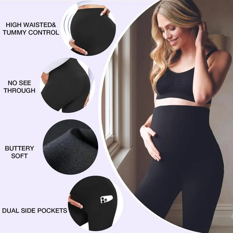 92% Polyester, 8% Spandex Lightweight & Soft Material - Our maternity leggings are made of 92% polyester and 8% spandex.This is a very soft, lightweight and breathable material, which can keep you warm and comfortable on the autumn or winter days.It is like the second skin, giving you a buttery soft and comfy wearing experience. Belly Support - Our maternity Mid-Thigh Length shorts designed with unique lines which can show your figure perfectly.Designed for pregnant mothers maternity yoga leggings, suitable for pregnancy gradually increasing abdominal circumference, high waist design can lift the buttocks to protect the waist, stretchy and comfortable not to strangle the belly, to ensure the healthy growth of the baby. Sufficient Elasticity - 4 way elasticity gives you and your baby more room for movement and growth.a pair of maternity leggings can run through your entire pregnancy whether it is from the first trimester to the third trimester.The U-shaped positioning bar gives the baby all-around protection and better support. Occasions - These high waisted pregnancy leggings are suitable for yoga, pilates, fitness, cycling,workout or any type of exercise either at home or in the gym.Perfect matched your T-shirts, maternity dress, blouse,crop tops, tunic top. 100% Customer Service - We are devoted to achieving 100% customer service satisfaction. Your satisfaction is our topmost priority. If you don't like leggings or have any problem please contact us, we’ll reply to you in 24 hours.These stylish and comfy women’s shorts make a great gift to yourself or as a birthday, anniversary, holiday, or Christmas gift to a spouse.