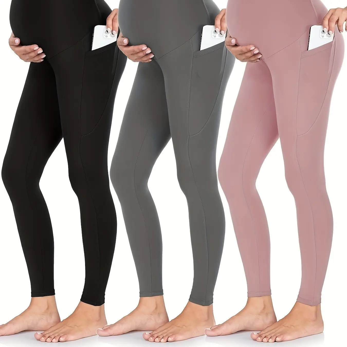 3 Pack Women's Maternity Leggings Over The Belly with Pockets Super Soft Workout Pregnancy Yoga Pants