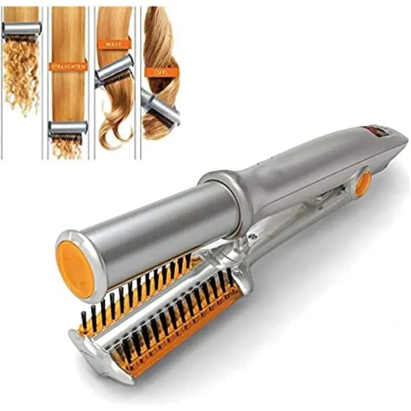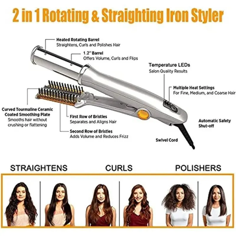 2In1HairCurlerStraighterRotatingIronForHairCurlingAndStraighting,ProfessionalHotBrushStylerIronsHairdressingToolWithAdjustable(Blush)(A2)SmoothStraightener