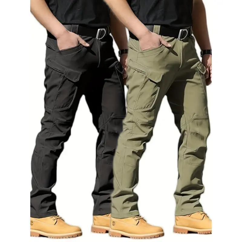 2 Pack Men's Tactical Waterproof Resistant Warm Ripstop Cargo Lightweight Outdoor Hiking Pants With Multi Pockets No Belt