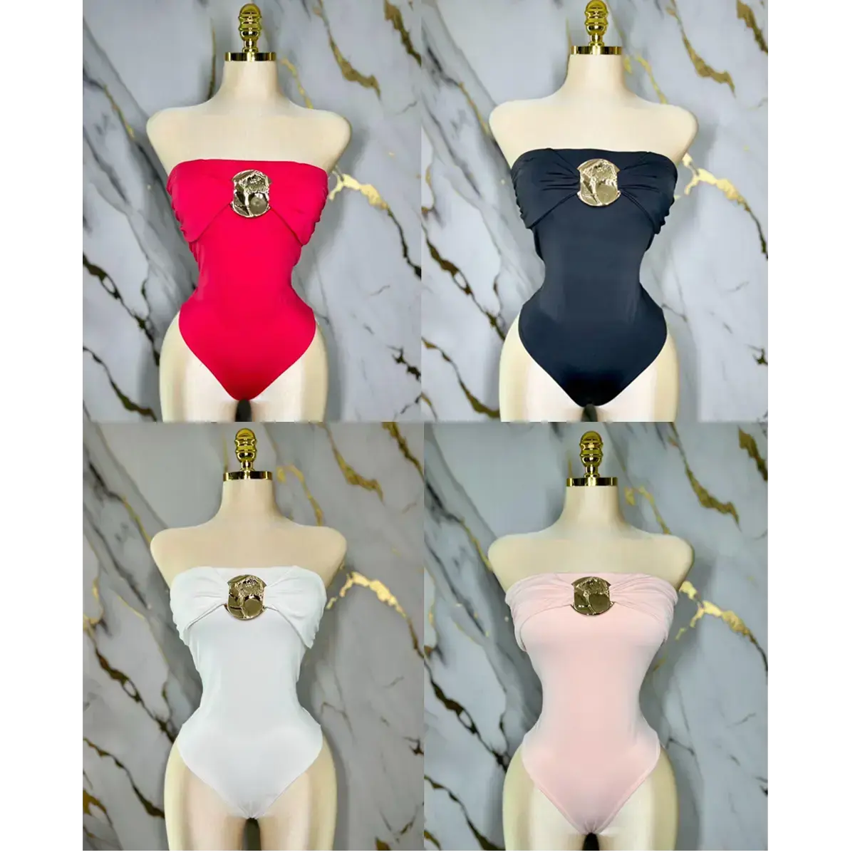 GOLD METALL EMBELLISHED BODYSUIT OFF THE SHOULDERS