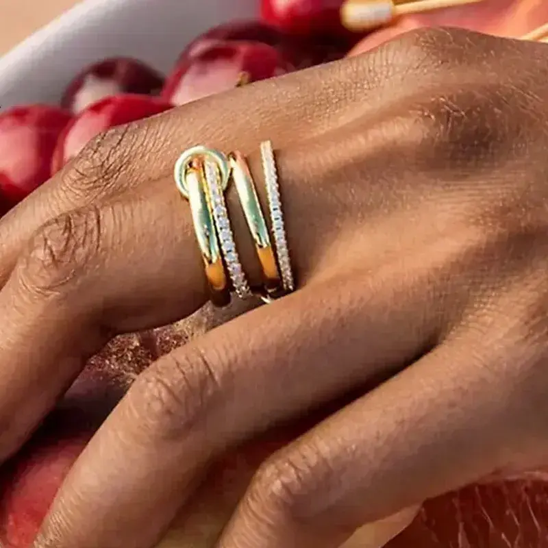 PAVOI 14K Gold Plated Interlocked Stackable Statement Ring for Women – Chunky Multi-Band Double & Triple Ring, Two-Tone Mixed Metals with Cubic Zirconia