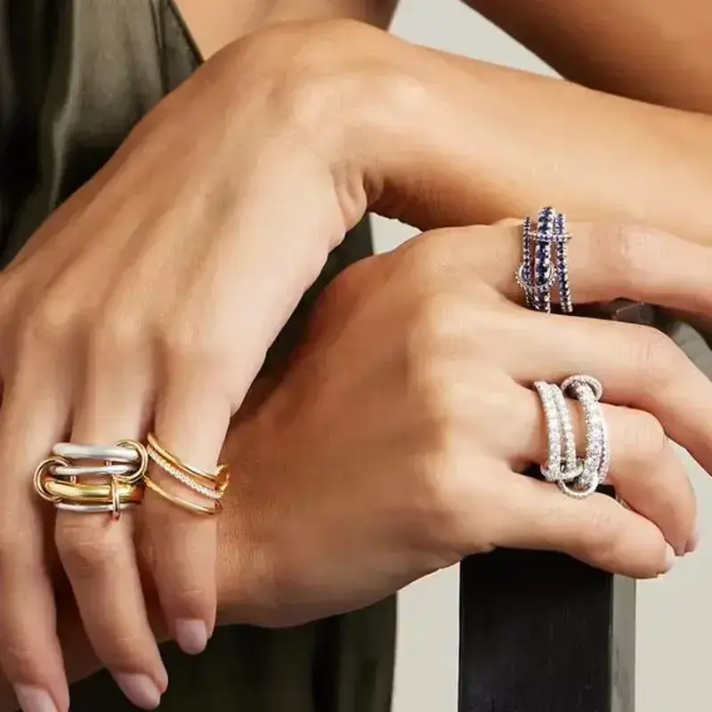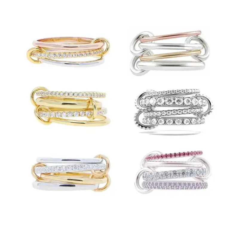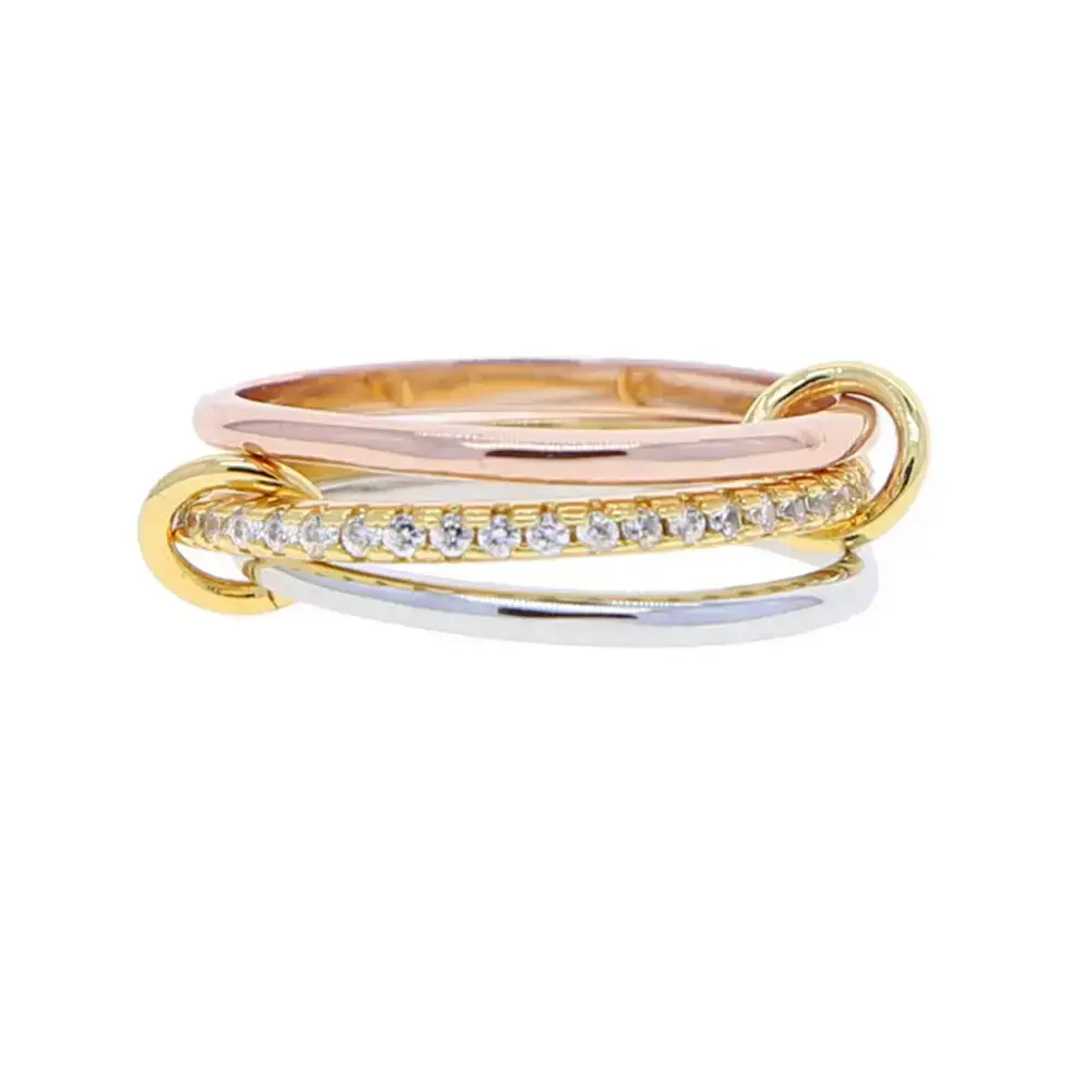 PAVOI 14K Gold Plated Interlocked Stackable Rings for Women - Statement Mixed Metals Multi Ring Stack - Cubic Zirconia Two-Toned Connected Bands Stacking Jewelry