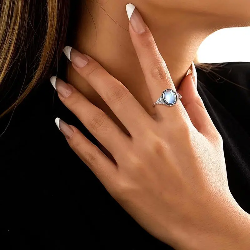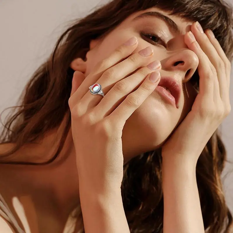 SterlingSilverMoonstoneMoodRing-VintageHandmadeVictorianOvalSolitaire-18KWhiteGoldPlatedColorChangeRingforWomen