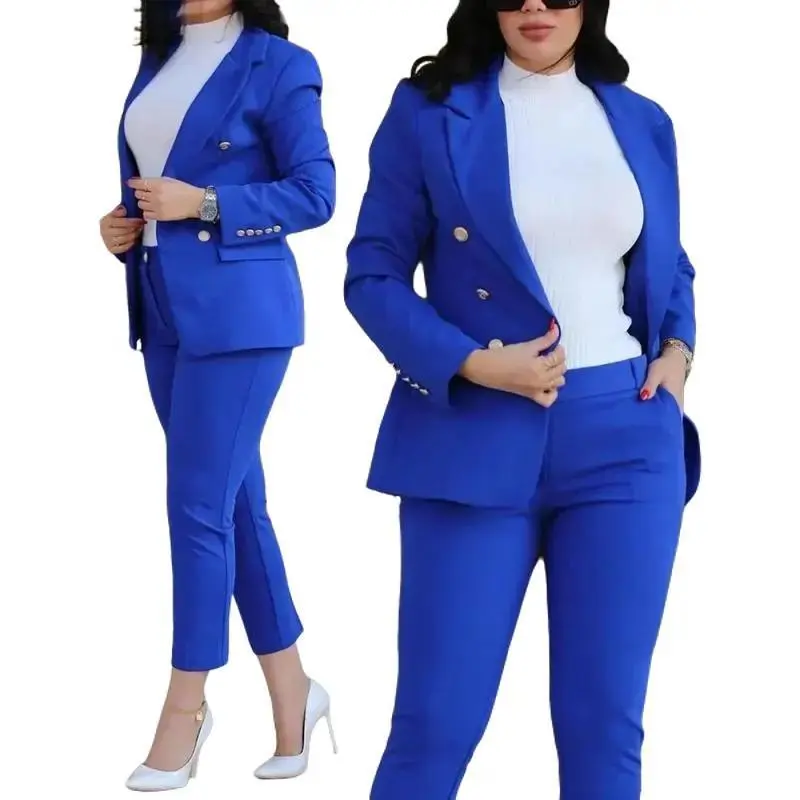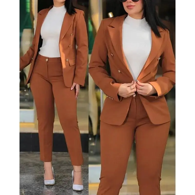 New2025FormalOfficePantSetsWomen2PCSDoubleBreastedSolidBlazersJacketandPantsTwoPiecesSetFemalePantSuitsSetsWomenswearMatchingClassic&ModernStylesTrouserLongSleeveBasicBlackChicElegantFittedMinimalist