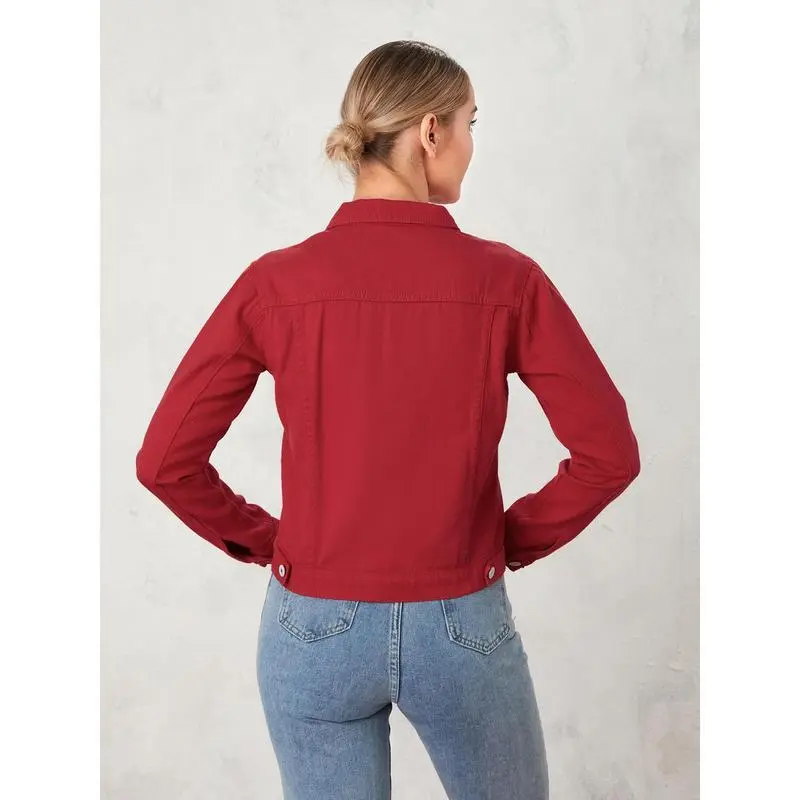 Women's Solid Color Denim Jacket - Casual Long Sleeve Button-Down with Chest Pocket Jean Jacket Basic Womenswear Piece Tops Chic Coats Cotton Everyday