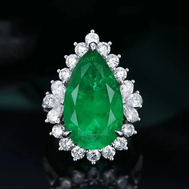 Luxury Water Drop Lab Emerald Sapphire Open Ring Exquisite Silver 925 Banquet Finger Rings Valentine's Day Gifts african lip belly engagement wear forever size cluster pink ice chunky misshapen smart promise toothless papal amira times square date male