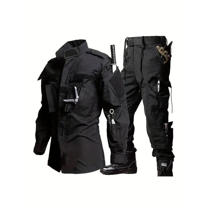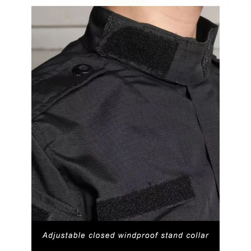 Men's Lightweight Tactical ACU Suit - Black, Durable Polyester Outdoor Camouflage Hunting & Training Gear with Multiple Pockets, Long-Sleeve Jacket & Cargo Pants for Hiking & Combat, Hiking Outfit | Rugged Outdoor Wear | Durable Fabric