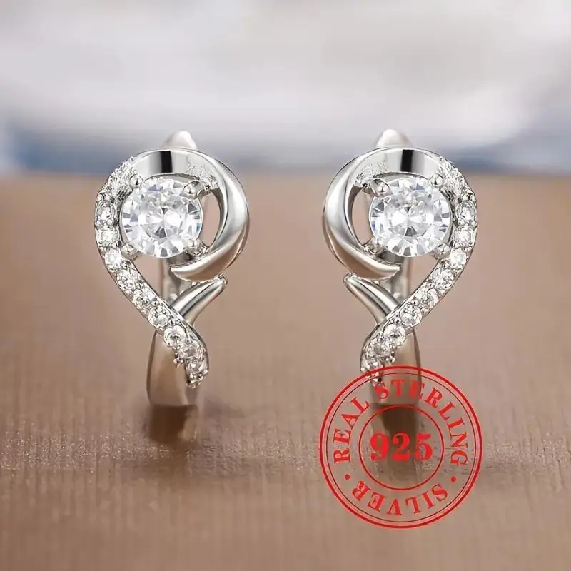 Stunning925SterlingSierExquisiteHoopEarringsHypoallergenicShinyZirconiaInlaidElegantandSexyDesignPerfectforAprilBirthstoneWeddingEngagementMardiGrasDayDailyandPartyOccasions