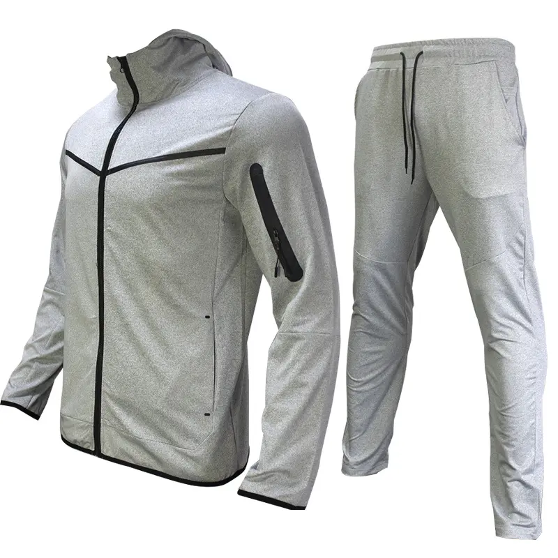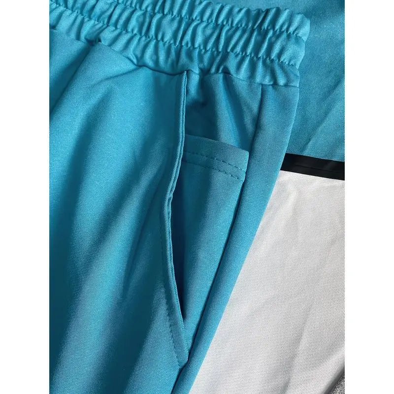 [Polyester Tracksuit Set] Lightweight Zip-Up Men's Sporty Hoodie & Sweatpants Set - Casual Polyester Tracksuit for Spring/Autumn, Machine Washable with Pockets, Long Sleeve