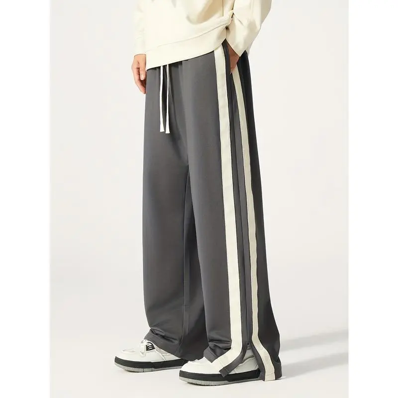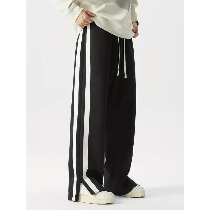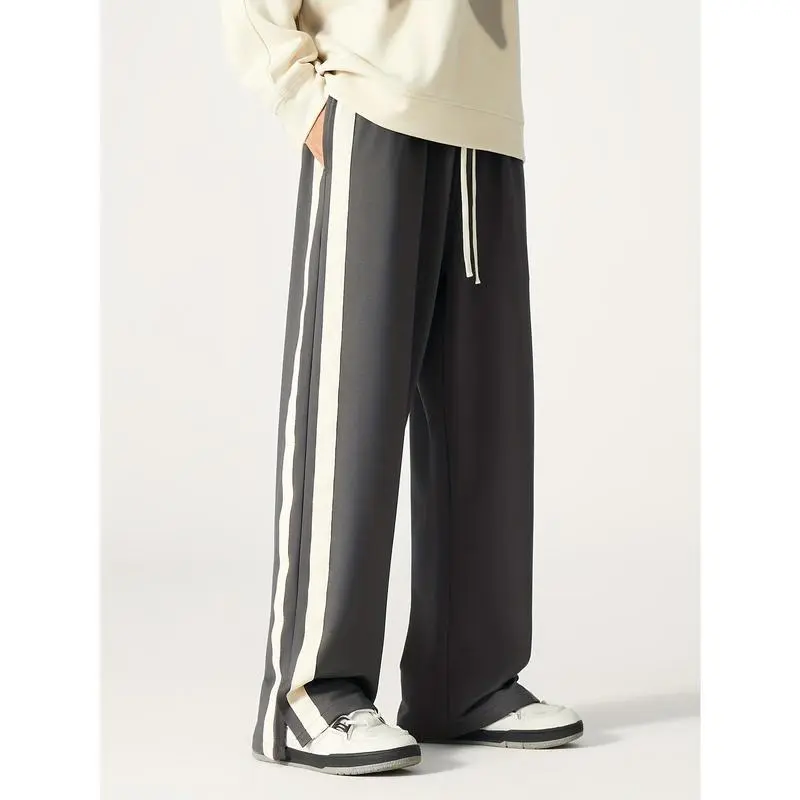 [Plus Size Striped Joggers] Lightweight Plus Size Men's Casual Striped Joggers - Loose Fit Polyester Blend Sweatpants with Pockets, Machine Washable for All-Season Comfort