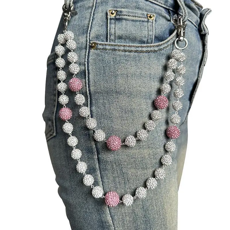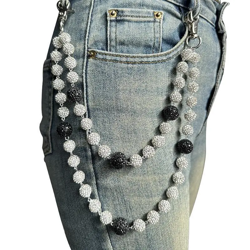 Hip-hop Men And Women's Trousers Chain High-quality Diamond Ball Rosary Beads Waist Chain Body Chain Jewelry, Jeans Chain