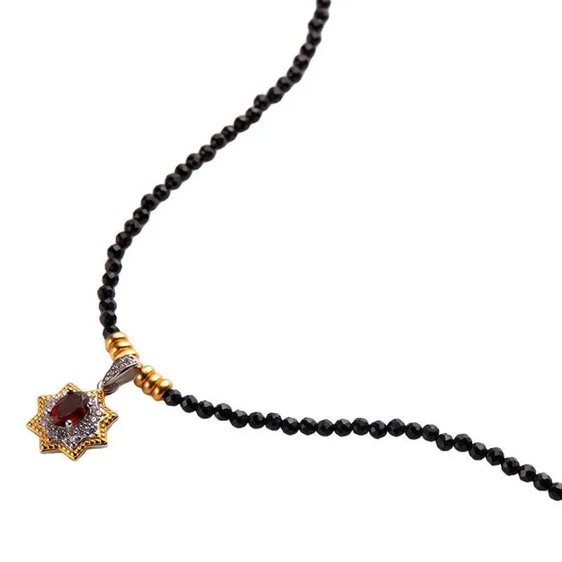 Natural Garnet Crystal Pendant Black Spinel Sterling Silver Necklace Fashion Light luxury Clavicle Chain for Women