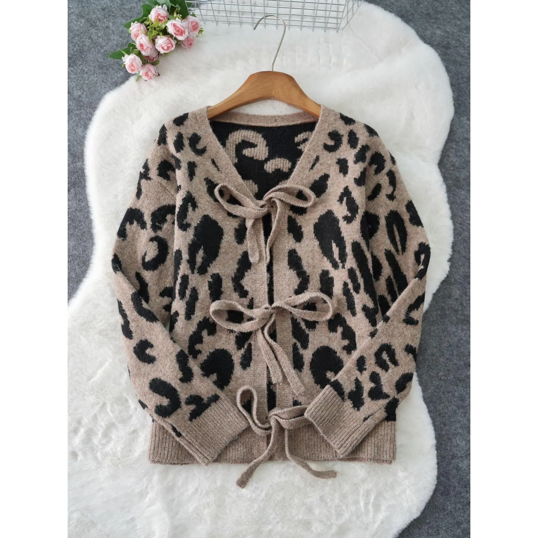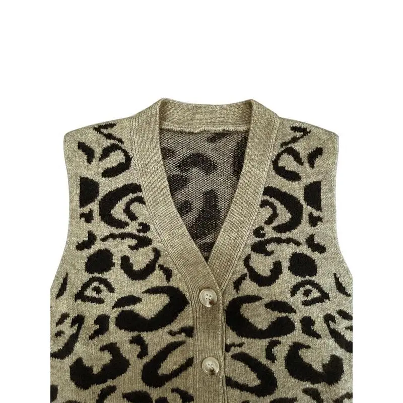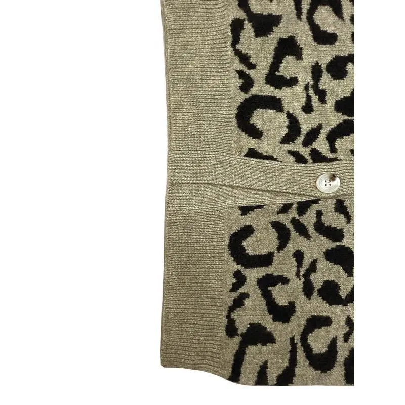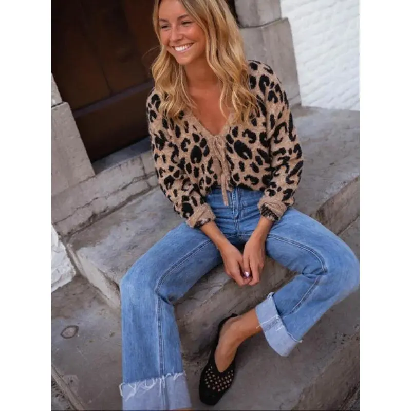 Women's sexy leopard print V-neck knitted long sleeved cardigan, autumn and winter fashionable sweater, with moderate fabric thickness