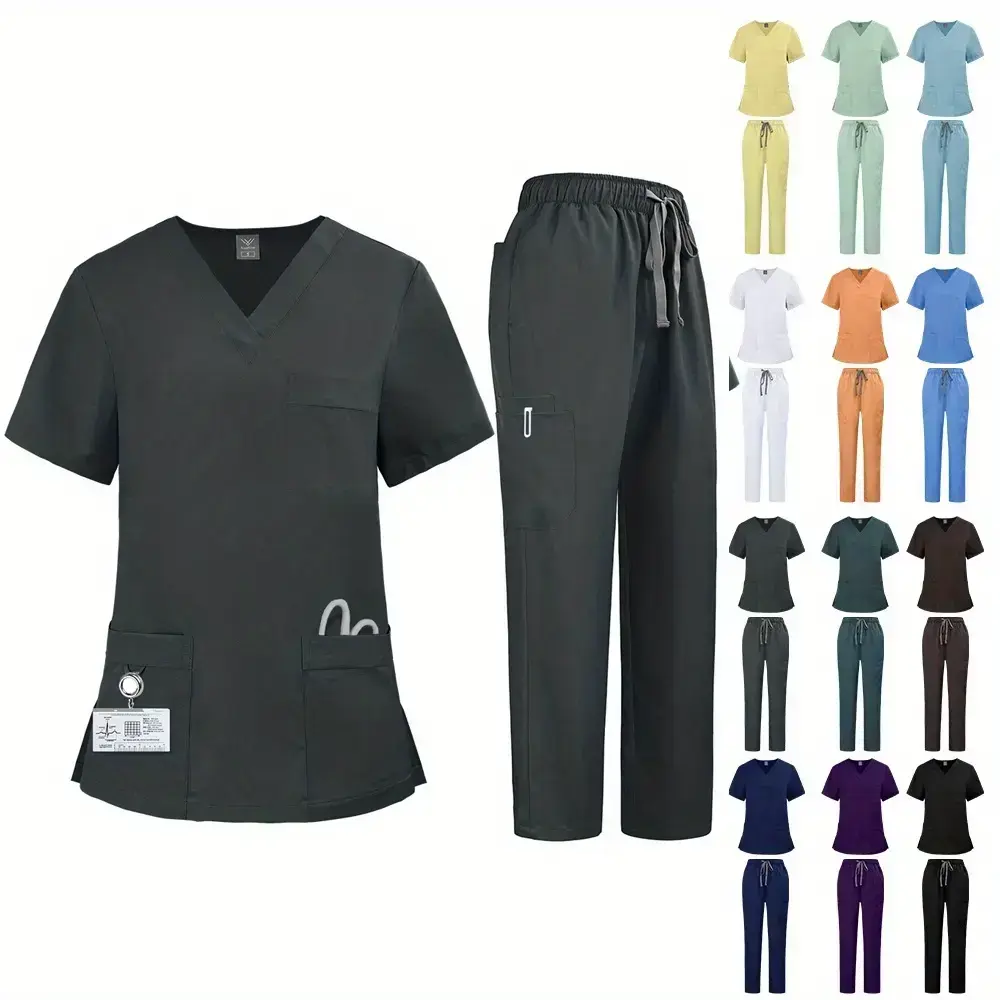 2 Piece Set Unisex Oversize Fast - Dry Stretchable Scrub Sets, Ideal for Healthcare Workers, 2pcs: Top & Bottom