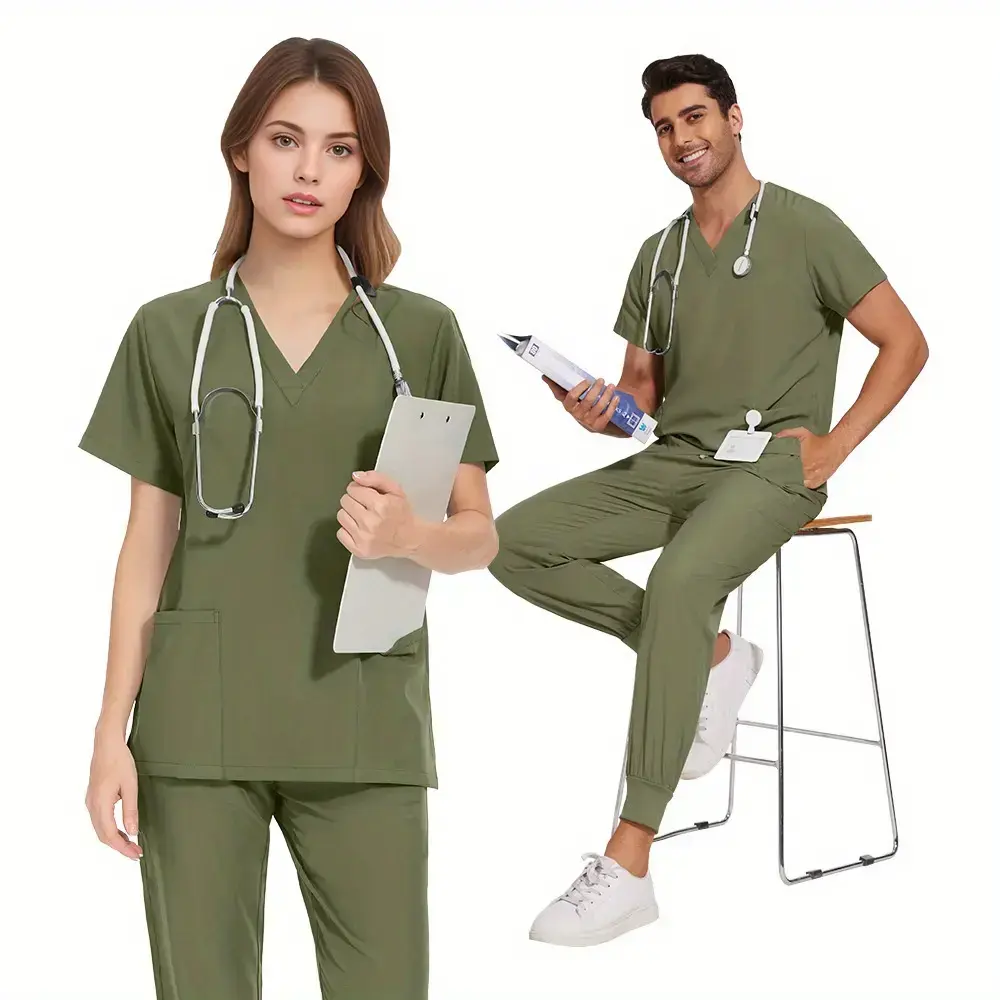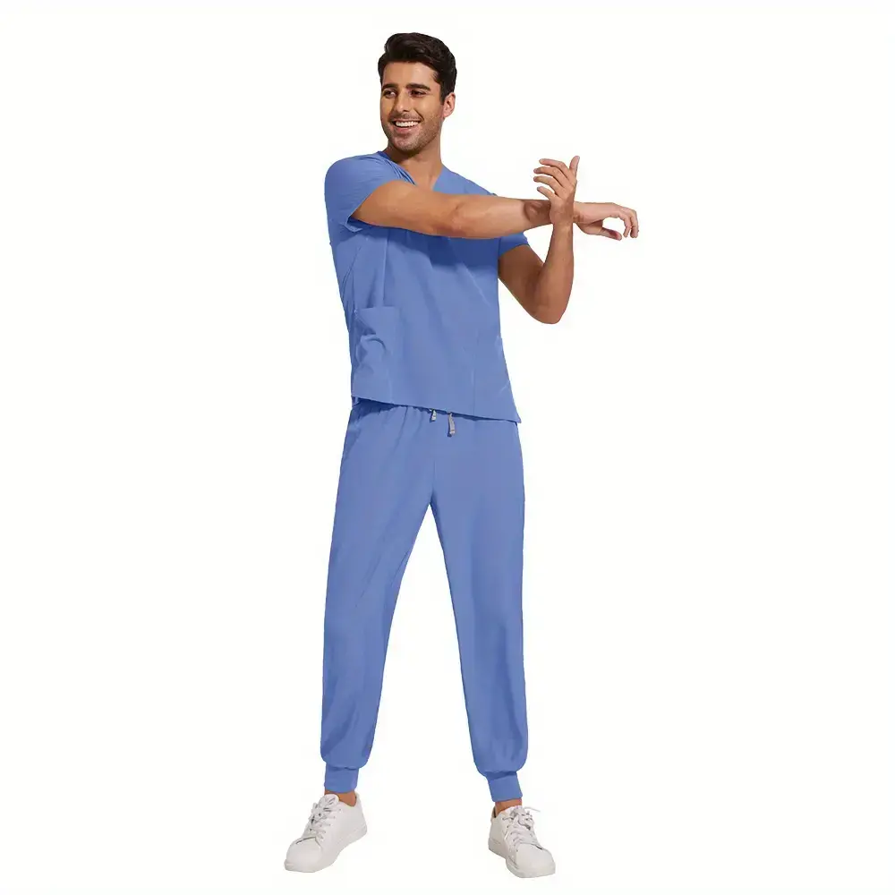 Scrubs for Men Scrub Sets Beauty Salon Uniform Set Slim Scrubs Stretch Top & Jogger Scrub Pants with Multi Pocket Yoga Waistband