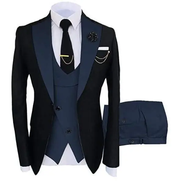 Our Men's Classic Black 3-Piece Suit is the ultimate wardrobe staple for any formal occasion.This impeccably tailored set includes a sharp jacket, matching vest, and perfectly cut trousers, all designed to give you that polished, confident look. Why it's a must-have: From weddings to crucial business meetings & gala events. Jacket, vest, & trousers for effortless coordination. Command attention with understated elegance. ailored for a modern, flattering silhouette.