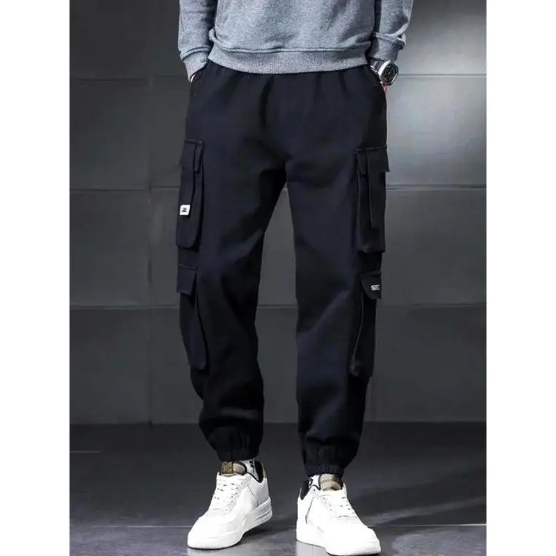Men's Letter Patched Flap Pocket?Cuffed Cargo Pants, Casual Streetwear Loose Trousers for Spring, Fashion Men's Bottoms for Daily Wear