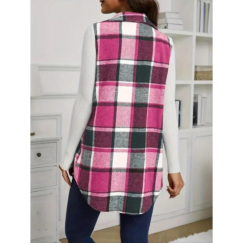 Women'sPlaidPrintButtonFrontVestCoat,CasualPocketDesignCollaredWaistcoatforFall,FallOutfits,FashionWomen'sClothingforDailyWear,TrendingClothingWomen,Womenswear,ClothesforWomen
