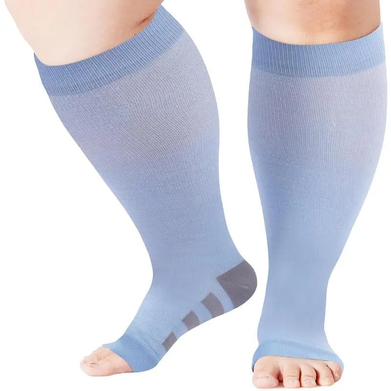 Striped blue open toed fat socks