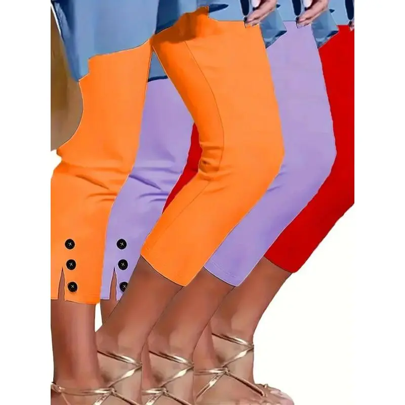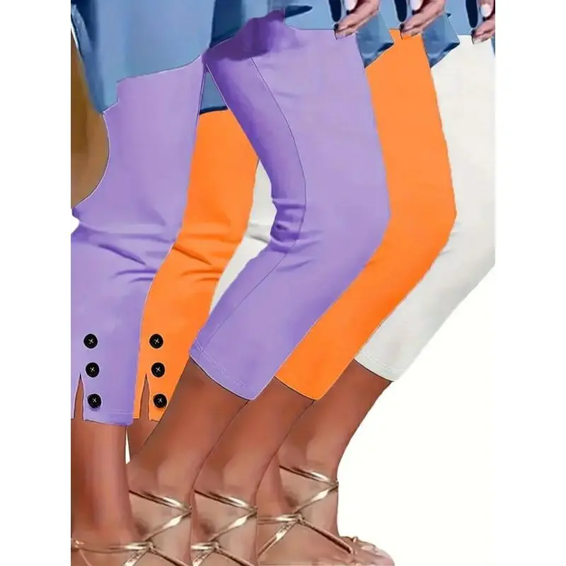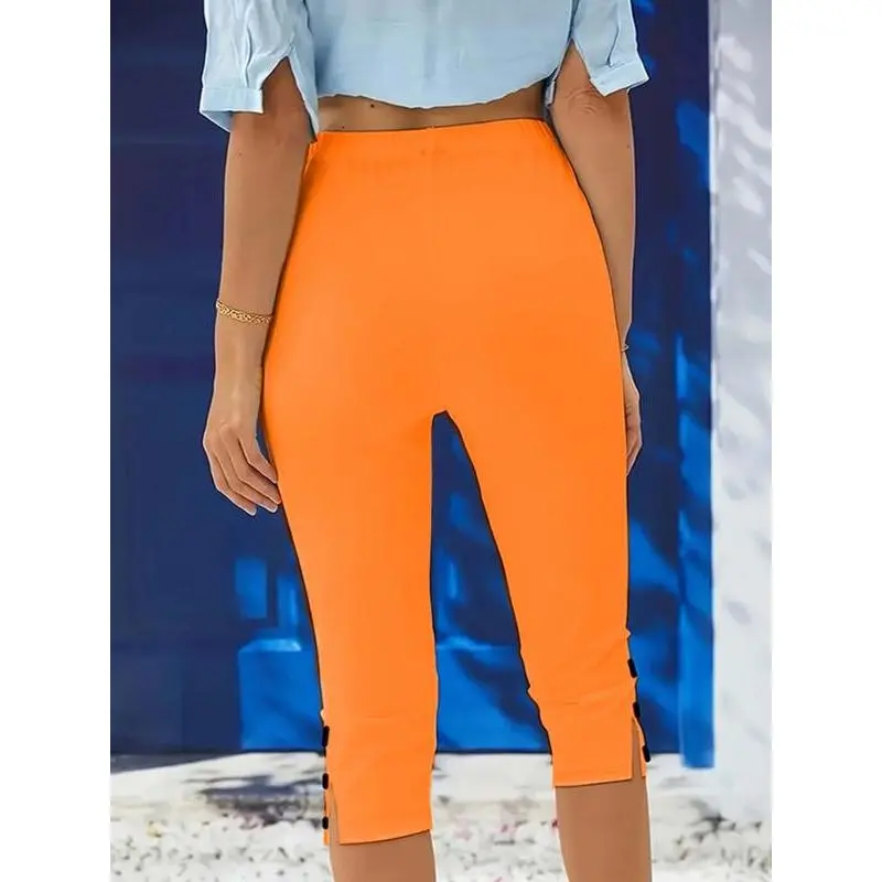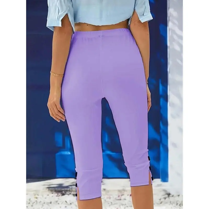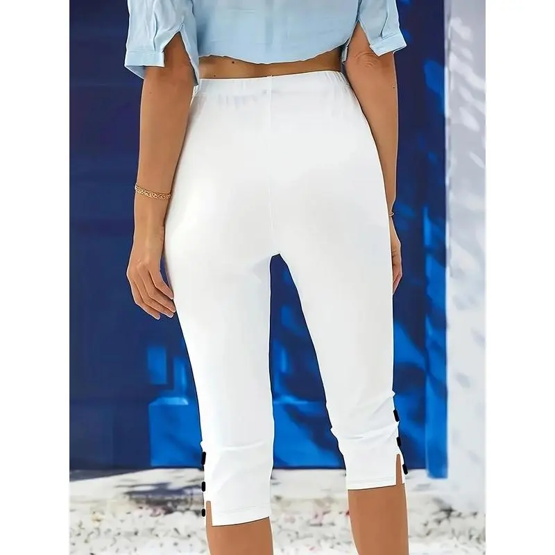 Women's Solid Color Skinny Capris Pants, Casual Comfy Breathable Trousers for Daily Wear, Ladies Bottoms for?All Seasons