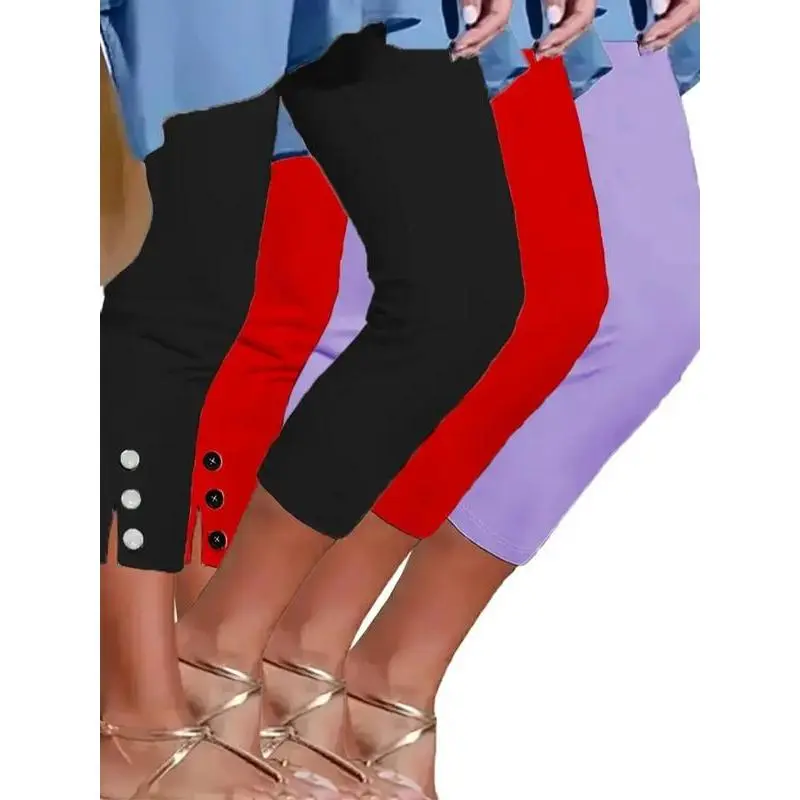 ��Trendy Split Hem��: Features a modern split hem that adds a unique touch to your wardrobe, distinguishing it from standard leggings. ��Polyester Blend��: Crafted from elastic polyester fiber, providing a balanced mix of durability and comfort for all-day wear. ��Moderate Thickness��: Designed with moderate fabric thickness, striking a balance between opacity and breathability for various weather conditions. ��Fitted Silhouette��: Offers a fitted silhouette that enhances body shape, catering to customers who prefer a snug fit in their activewear.