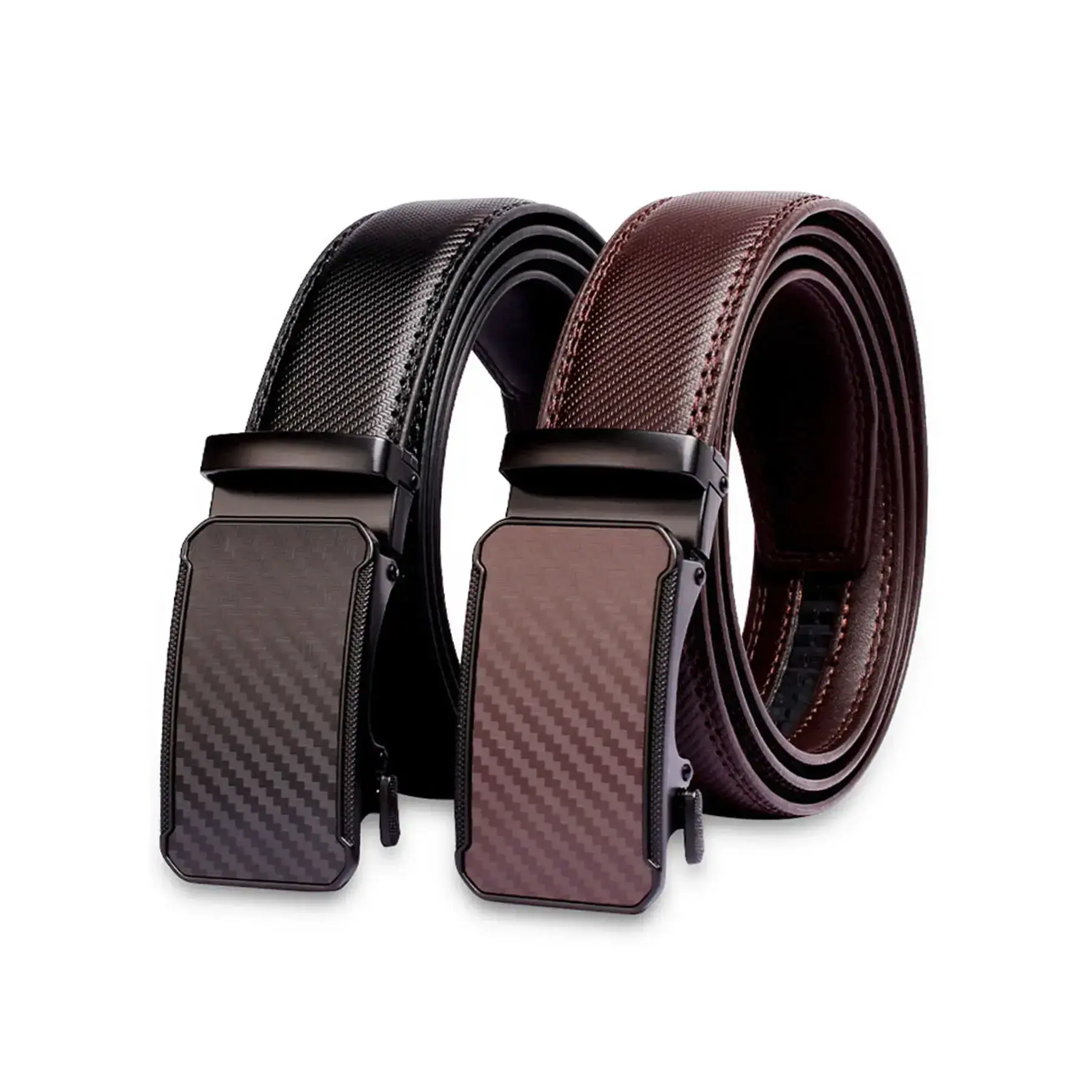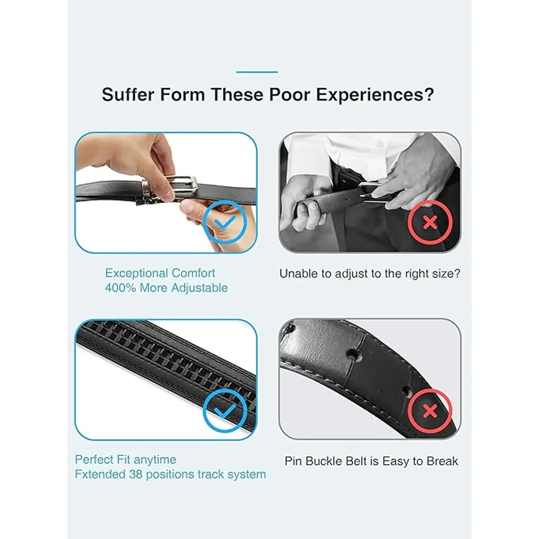 Leather Adjustable Ratchet Belt Men 2 Pack - Customizable Fit, Effortless Style (35mm)