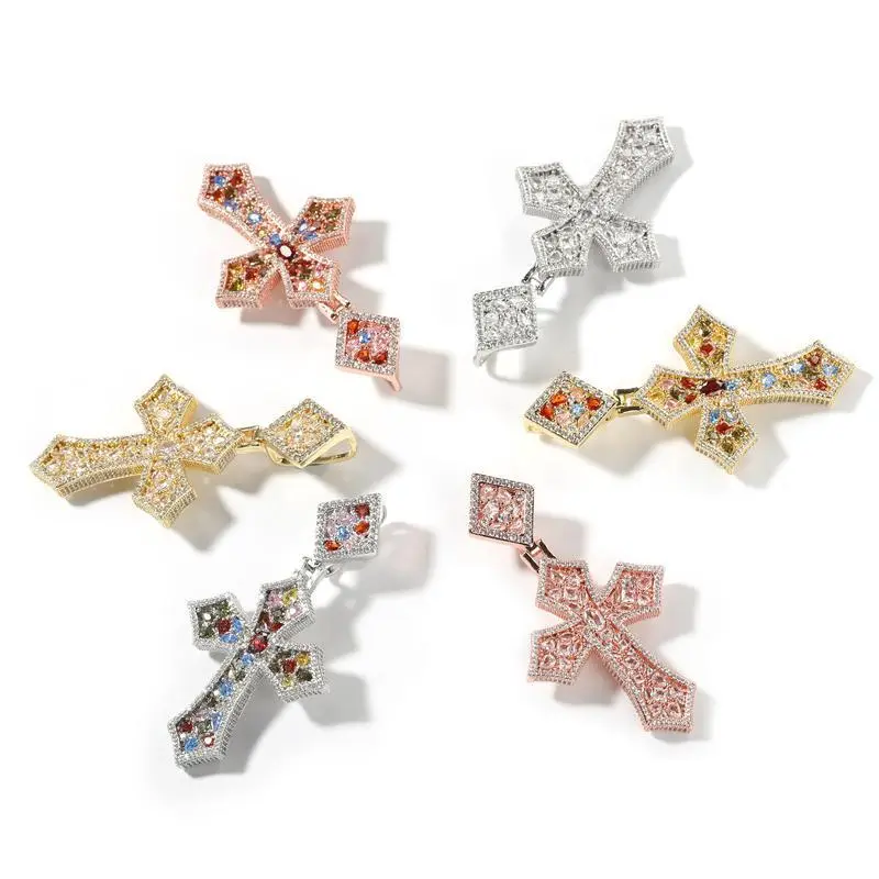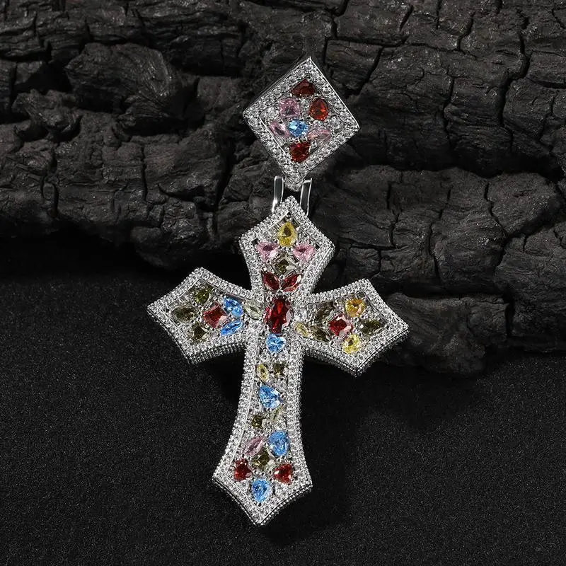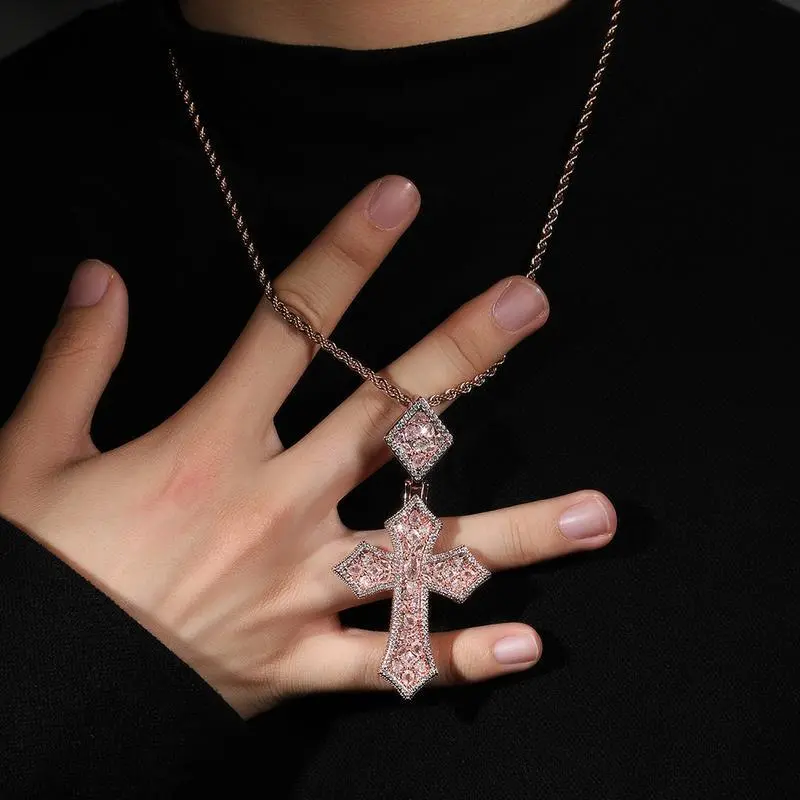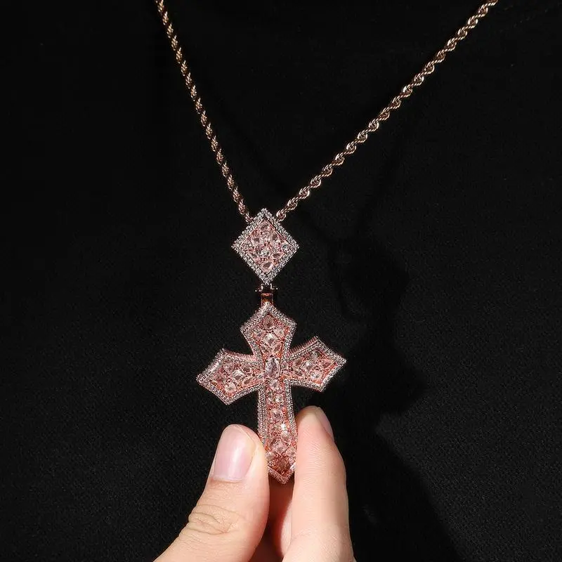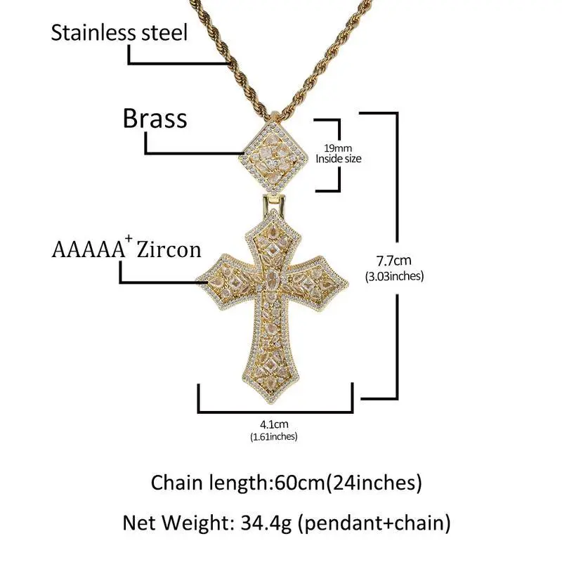 CrossPendantRopeChainCombo-Unisex,18KSilverwithGoldPlated,5ACubicZirconiaandMoissanite,5ACubicZirconiaandMoissaniteNecklaceMen'sStatementNecklace