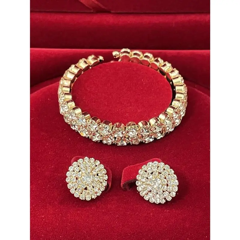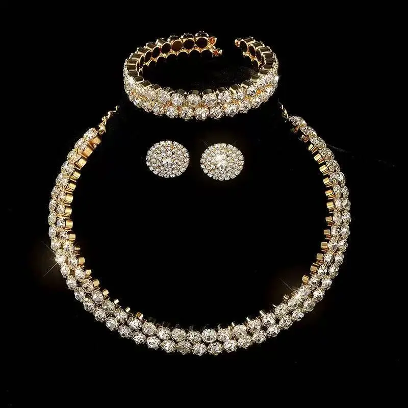 3pcs Set Bling Rhinestone Multi-Layer Necklace, Earrings, Bracelet & Choker Jewelry Set Bridal Wedding Gift