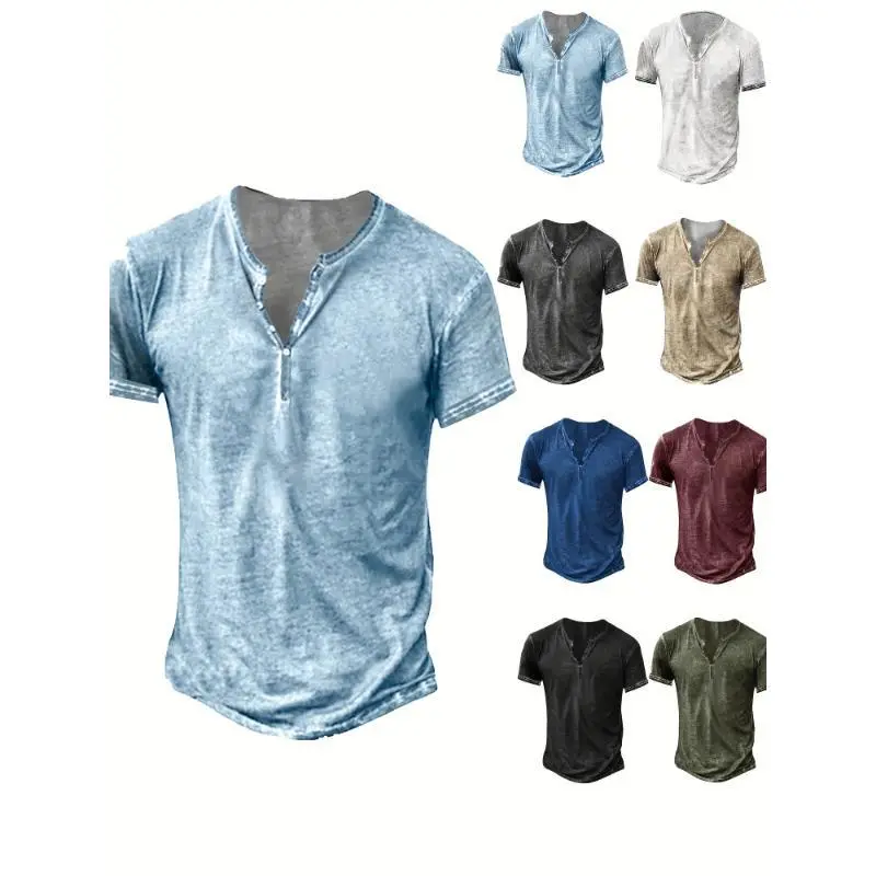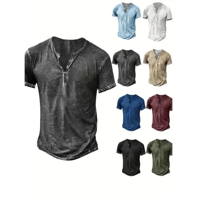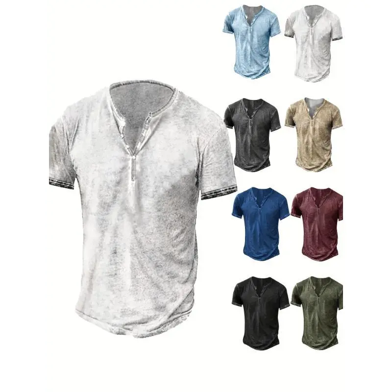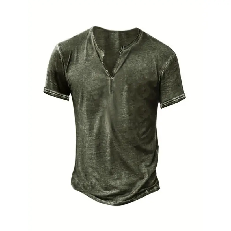 Men'sDistressedHenleyShirt-SlimFitShortSleeveButton-UpCottonT-ShirtwithV-Neck&PlacketDetailing,MachineWashableCasualShirtinOliveGreen,Black,Blue,Burgundy,SportyApparel|AthleticStyle|ComfortableTee